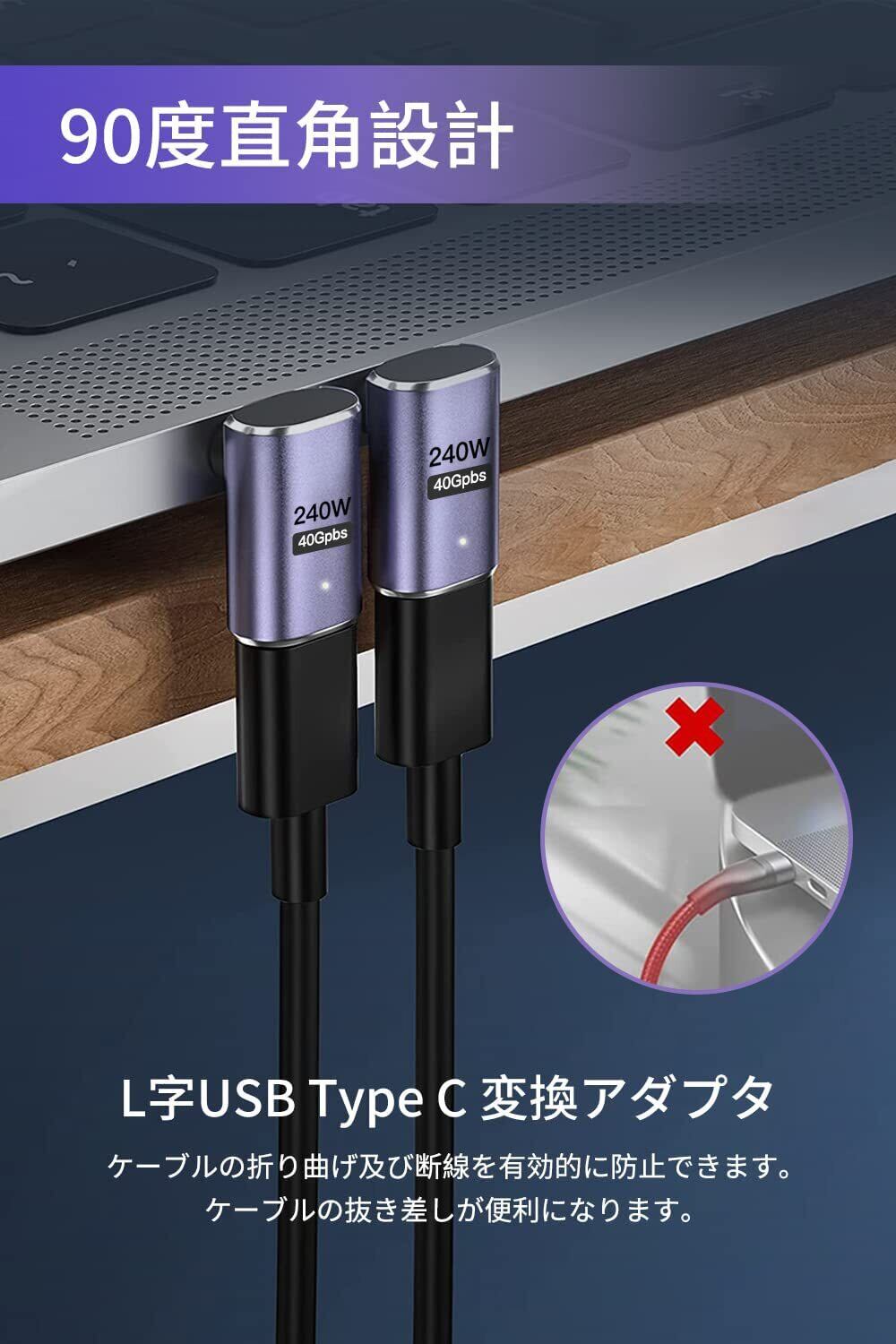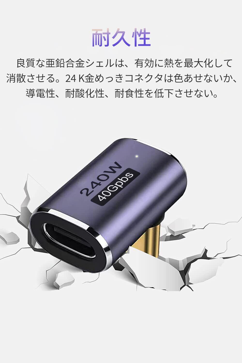 USB4.0 C 変換アダプター 2個セット 上下90°ミドルベント L字 L型タイプc【40Gbps高速データ転送&240W/5A急速充電& 8K@60Hz映像出力】Thunderbolt 3/Mac Book Pro/Nintendo Switch/Nexus 6P 5X/Samsung Galaxy S8/LG G5 V20などのType Cデバイスに対応