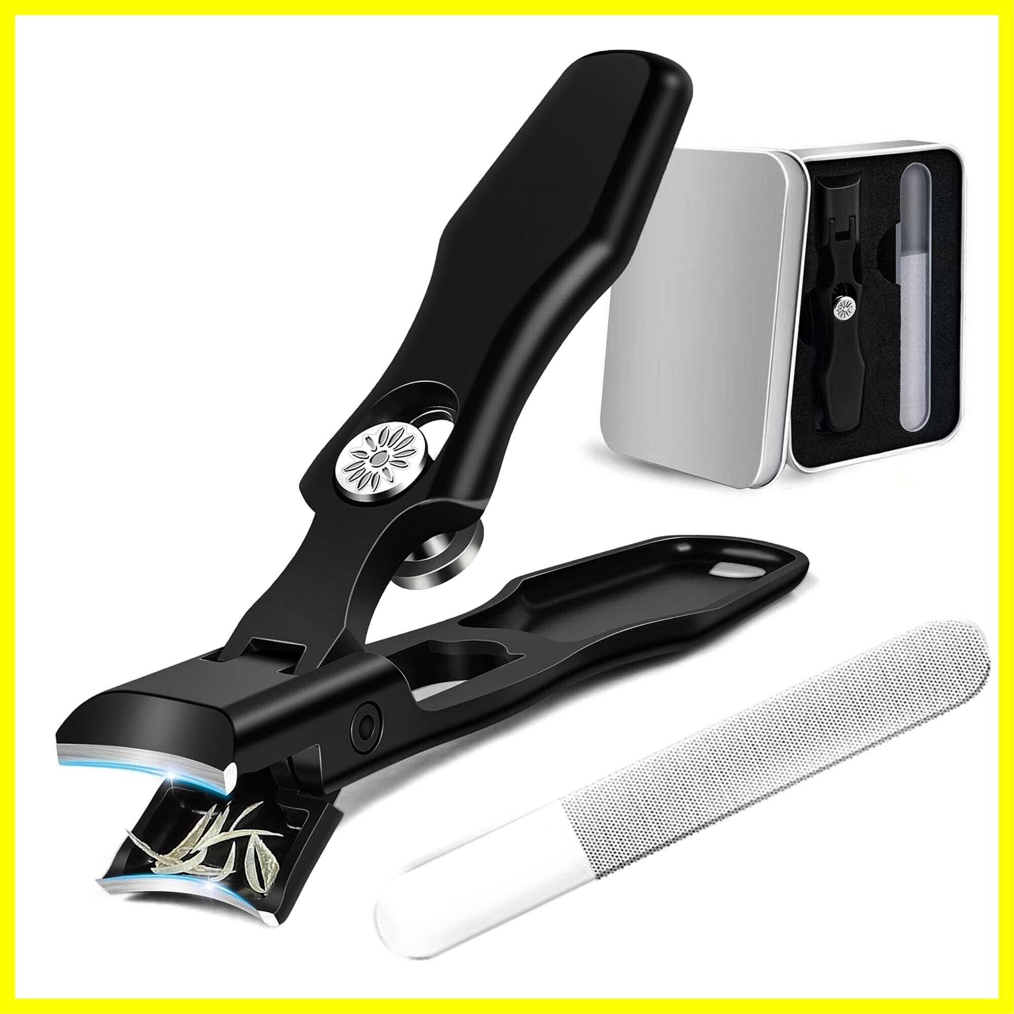 爪切り 日本製ステンレス【巻き爪 厚い爪 硬い爪 スパッと切れる】大開口 爪切り 高級 飛び散り防止 切れ味 つめきり 爪ケア 用 子供/大人/高齢者と家族全員が使用 手足用 収納ケース付き ガラス製爪磨き 爪切りセット