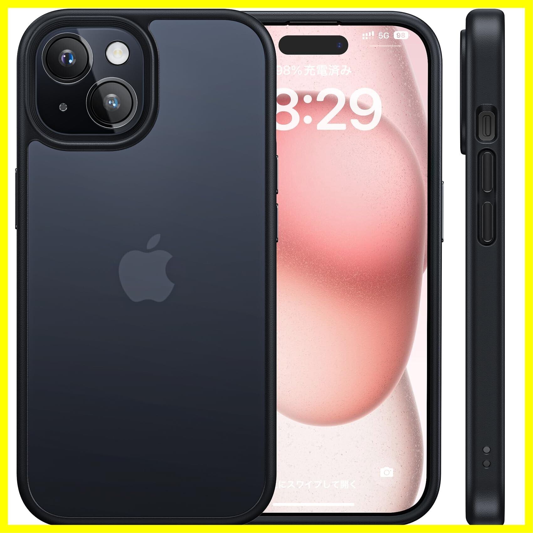 NIMASO ケース iPhone 15 用 カバー 滑り止め マット仕上げ 全面保護 耐衝撃 米軍MIL規格取得 ワイヤレス充電 ストラップホール付き アイフォン 15(6.1インチ)対応 スマホケース ブラック (黒羽シリーズ) NSC23H718