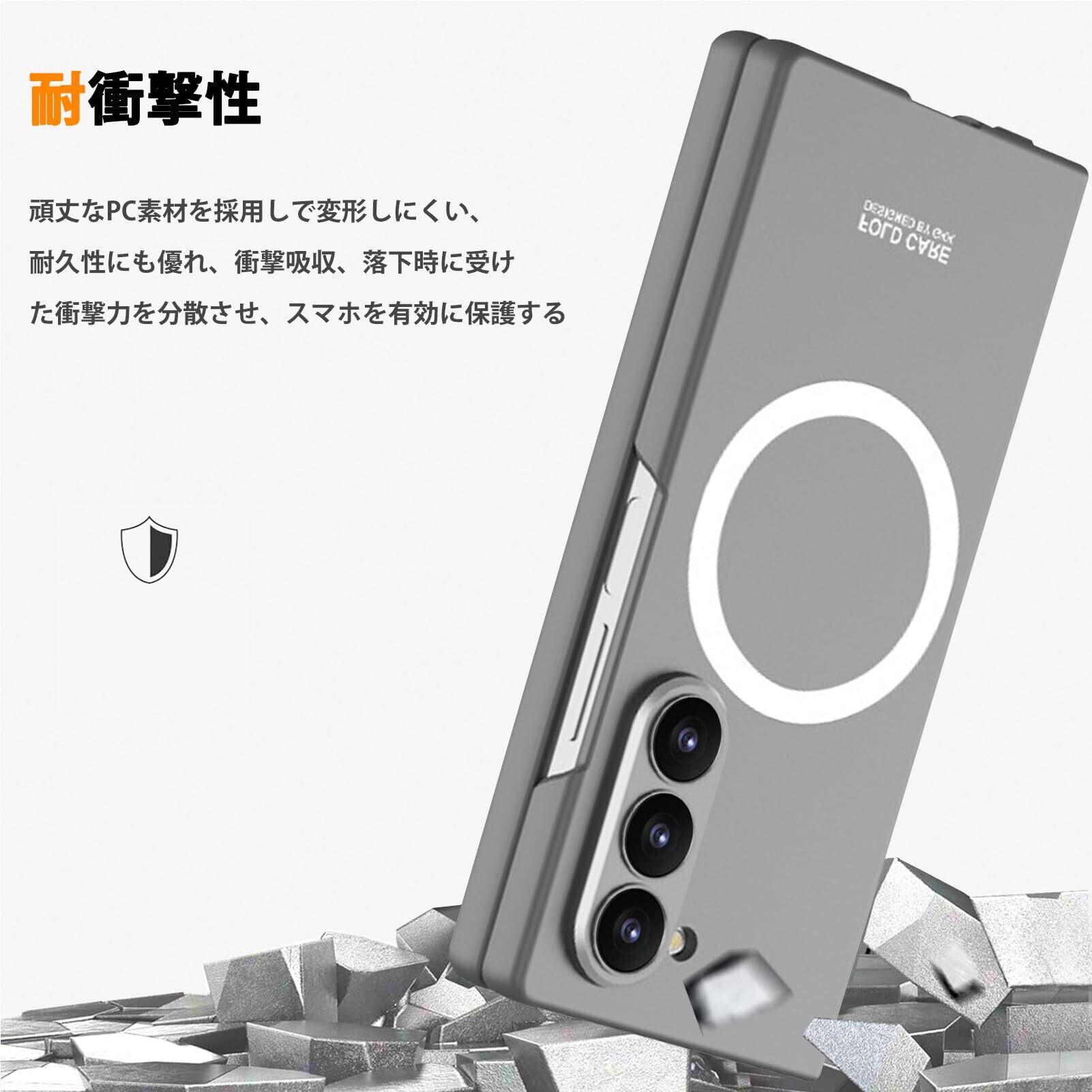 NINKI適応galaxy z fold6 カバー [SC-55E|SCG28] MagSafe対応 マグネットリング ワイヤレス充電 PC製 おしゃれ メンズ 人気 指紋つけにくい 折り畳み式 耐衝撃性 手触り良き スクリーンフィルム一体型 軽量 ギャラクシーzフォールド6 ケース (ダークグレー)