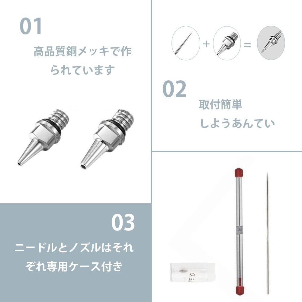 【素材】高品質のステンレス鋼と銅メッキで。交換用のノズルとニードルは、ほとんどの通常のエアブラシに適しています。