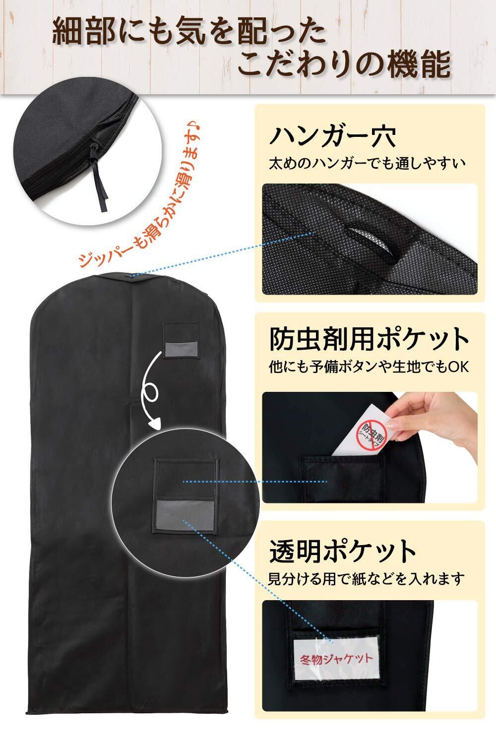 [RATOM] 洋服カバー 衣類カバー サイドファスナーで使いやすい(スーツサイズ5枚)