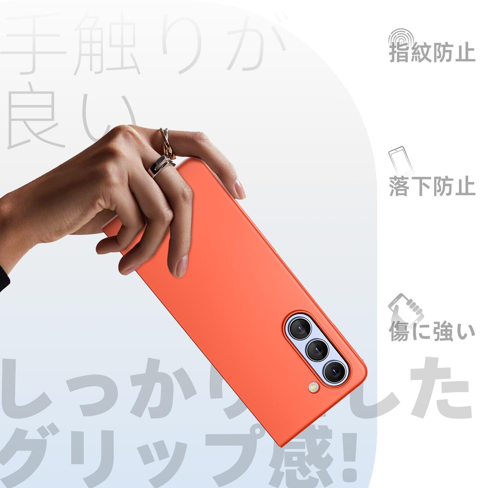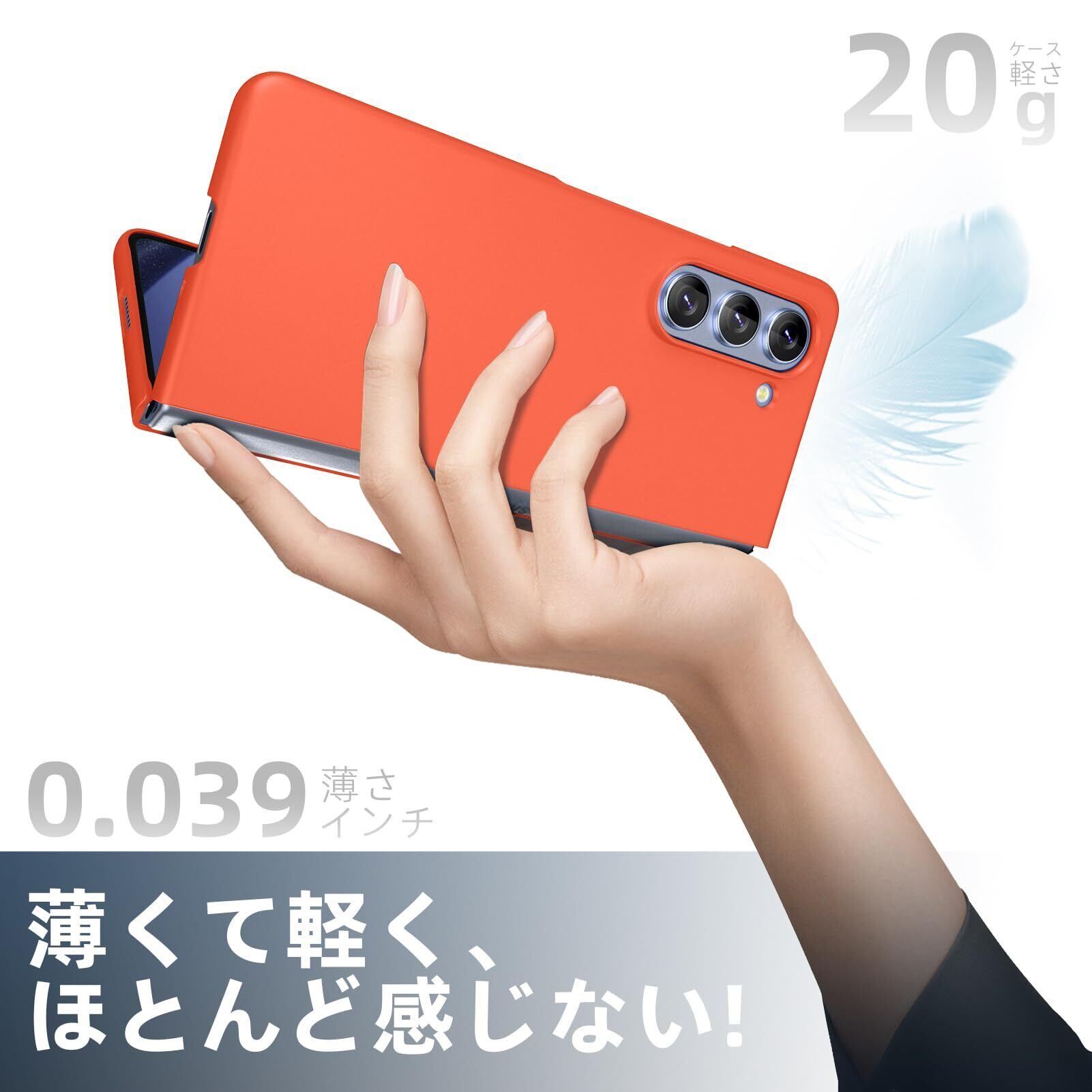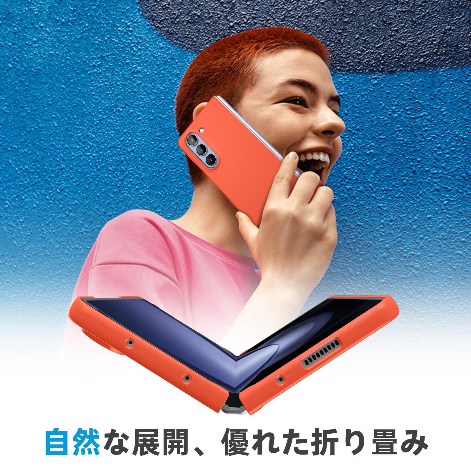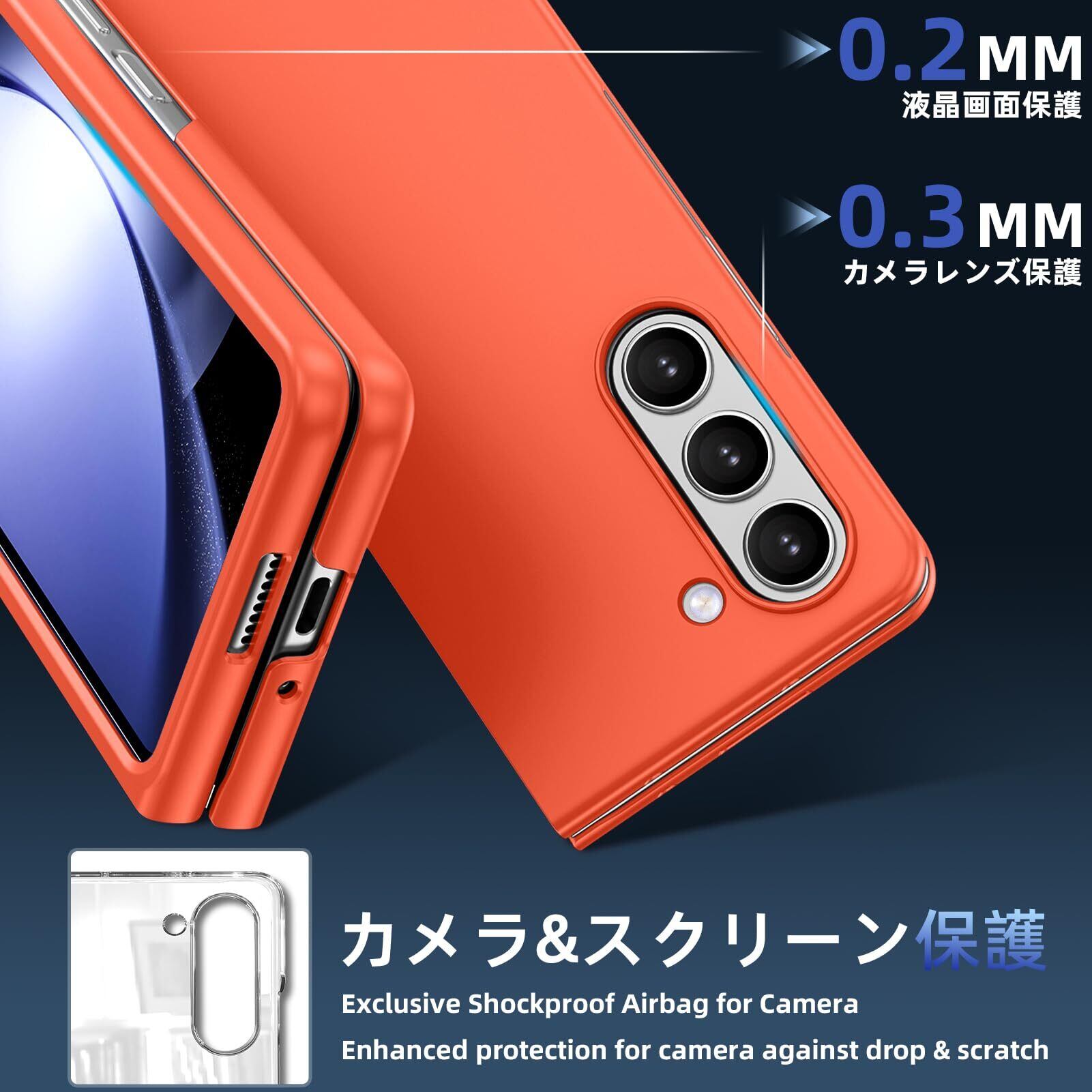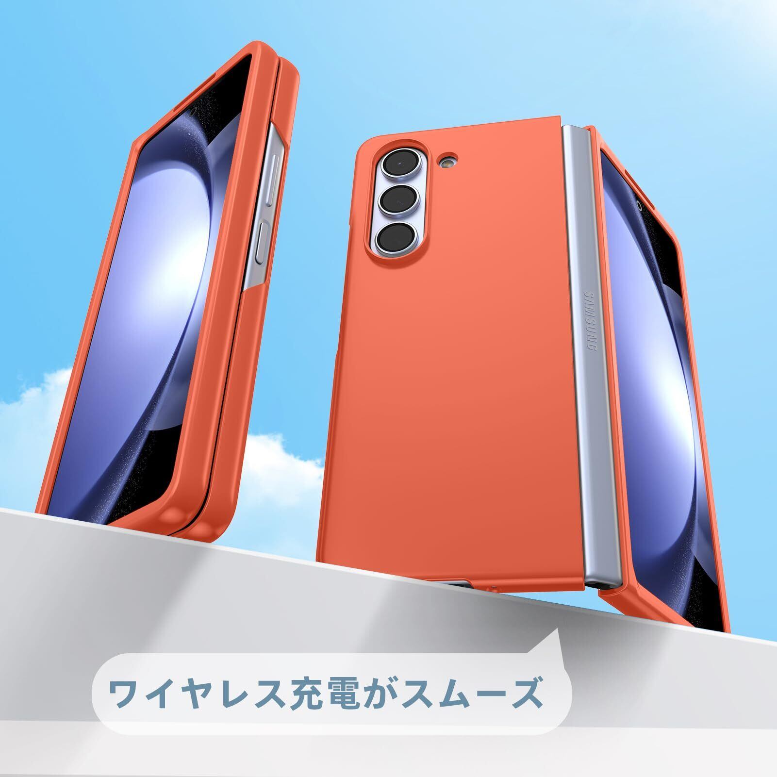Galaxy Z Fold5 ケース 薄型 人気 軽量 黄ばみ防止 SC-55D/SCG22 スマホケース 衝撃吸収 PC素材 シンプル ハード サムスン レンズ保護 衝撃吸収 耐久 人気 携帯カバー オレンジ -15-ZFOLD5-12