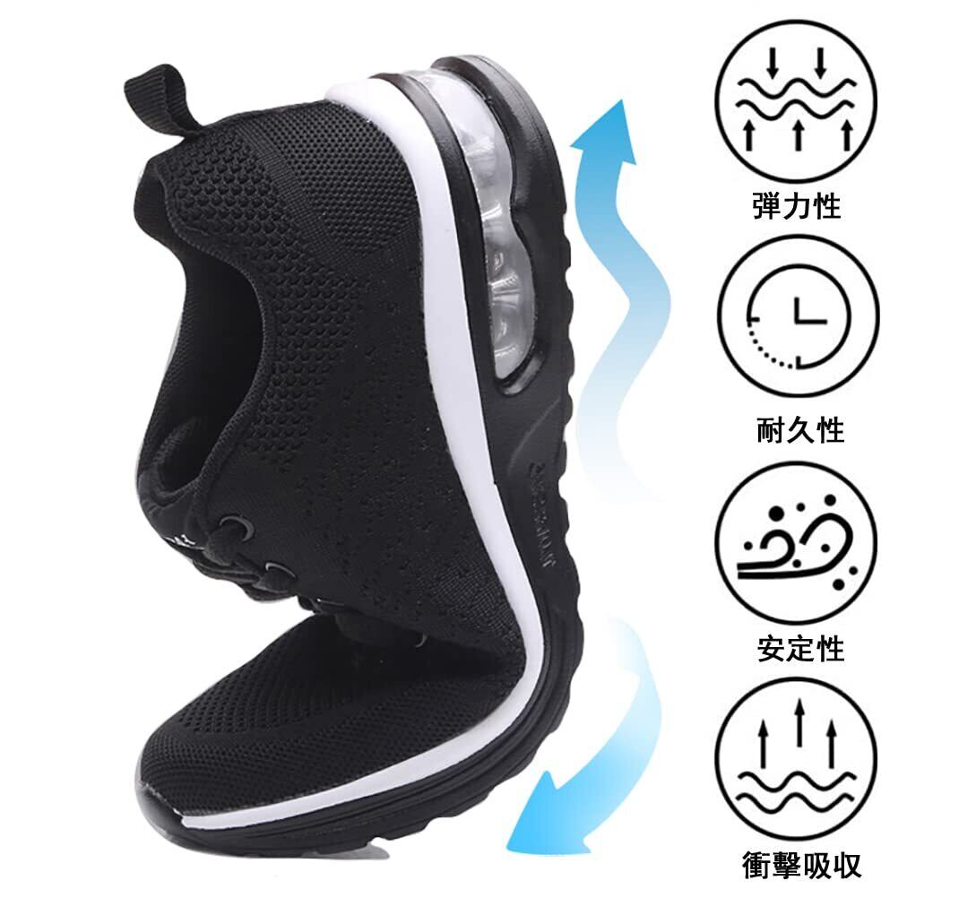 【超軽量】非常に軽い素材で作られているので、エアクッションの設計、透明なエアーソールが直立、足の負担も軽減・着地時に踵にかかる衝撃を効率よく分散、柔らかい靴底は足の動きをより快適にします。足指に優しい形をしておるので、履き心地の良いスニーカーであります、履きやすいだけでなく持ち運びにも優れています
