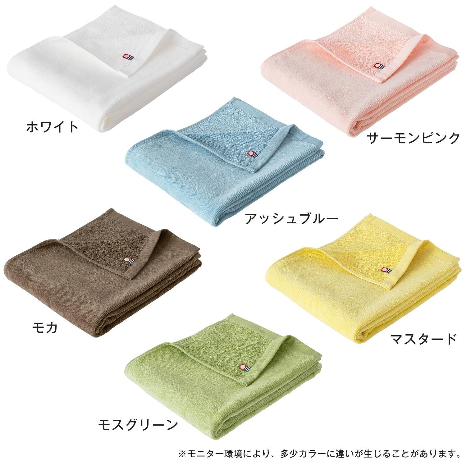 【商品詳細】サイズ:約40×100㎝ 重さ:約135g 素材:綿100% 原産国:日本/今治 今治タオルブランド認定番号:第2012-723号 カラー:全6色(ホワイト/アッシュブルー/サーモンピンク/モカ/モスグリーン/マスタード)