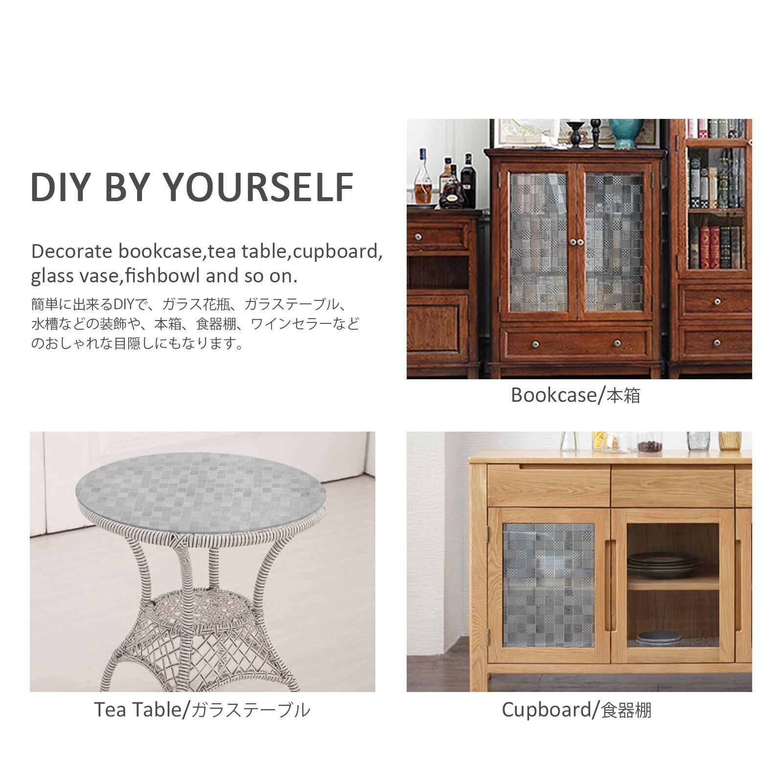 インテリア効果:デザインはおしゃれな3D柄で、普通のシートの厚さなのに、立体感あふれて、芸術ガラスに見えます。外からの光が入るとクリスタルのように輝いてとても綺麗です。花瓶に装飾や、コースター、テーブルマートにするなど簡単にDIYできます。