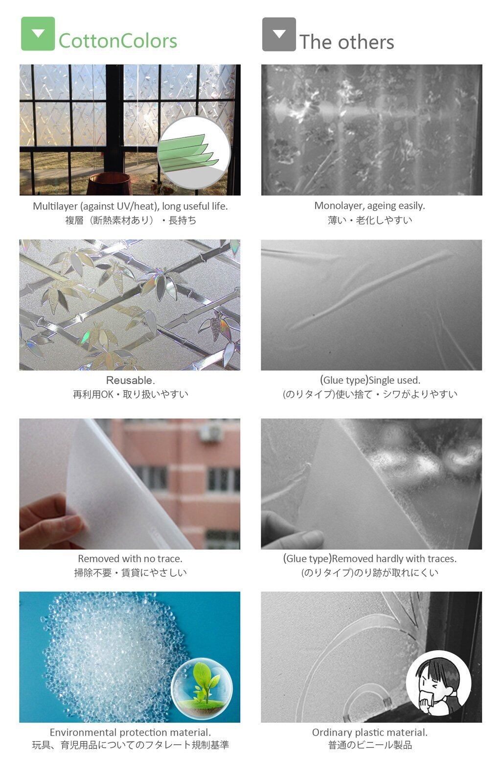 CottonColors 3D窓用フィルム 目隠しシート 何度でも貼り直せる 窓ガラスフィルム 遮熱 紫外線カット のりなし 90x200cm プライバシーガラスフィルム DIY [夢の間022]
