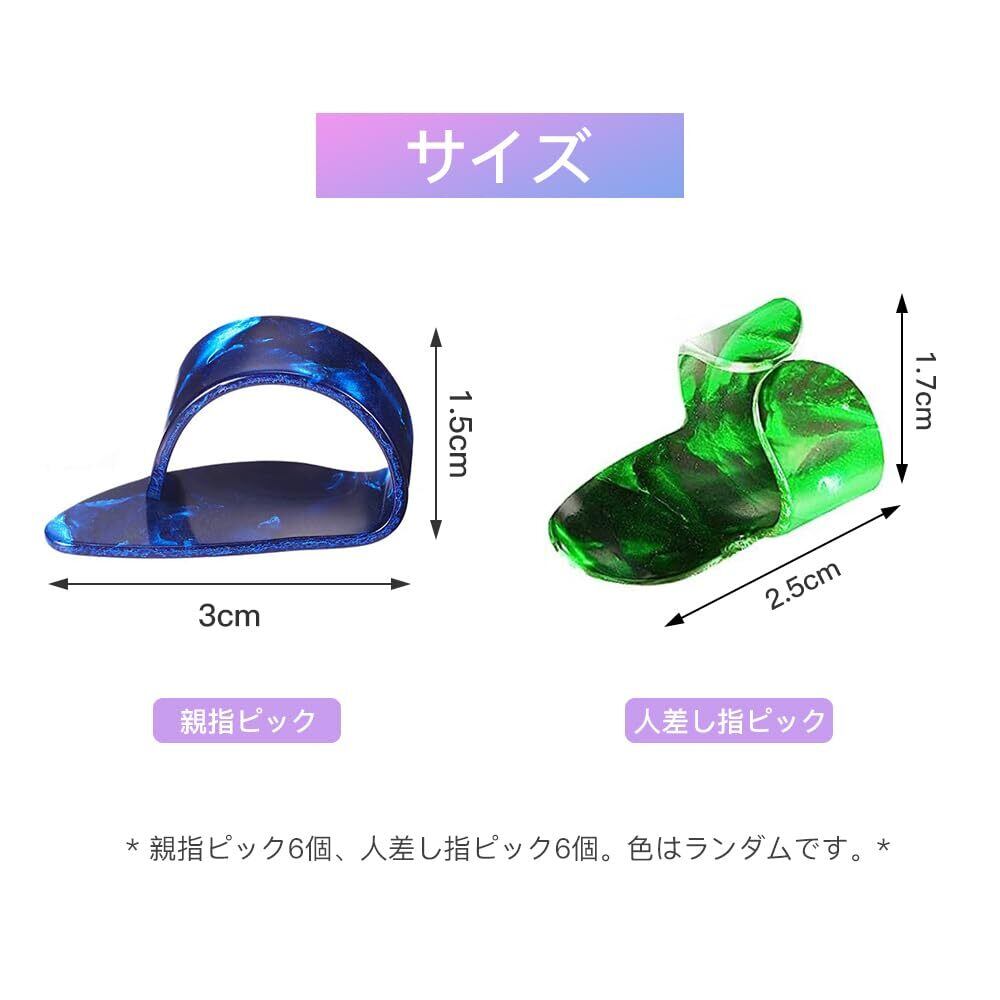 【サイズ】親指ピック: 約3cm×1.6cm、人差し指ピック:約2.5cm×1.8cm、色はランダムです。