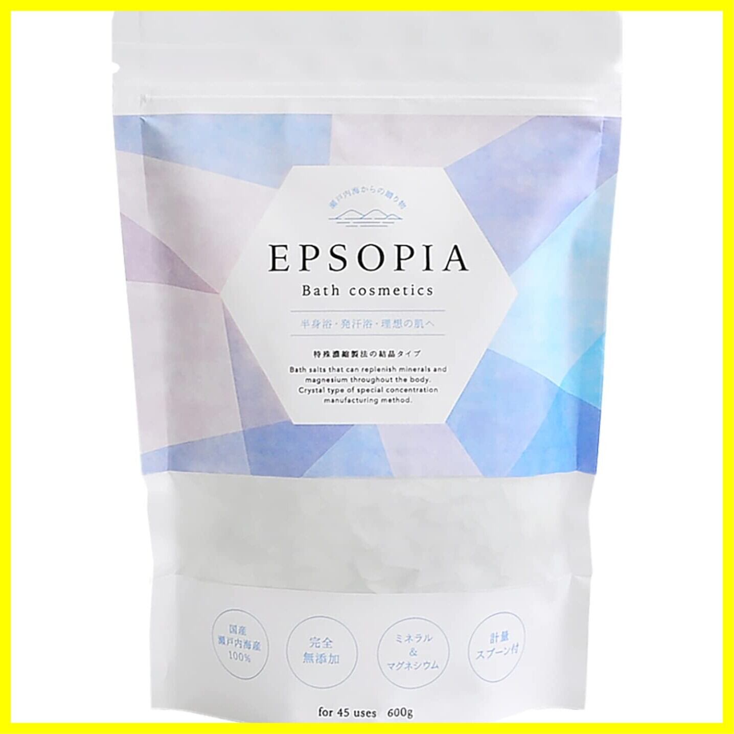 (45回分) 計量スプーン付きEPSOPIAでスパ体験100%国産完全無添加赤ちゃんの入浴にもご使用いただけます。頭皮から顔・体のお肌からミネラル補給・スキンケア自然な天然成分で素肌をいたわります。浸圧性が高いミネラル+マグネシウム半身浴に発汗浴に美肌活に足湯にみねらるとマグネシウムを全身補給
