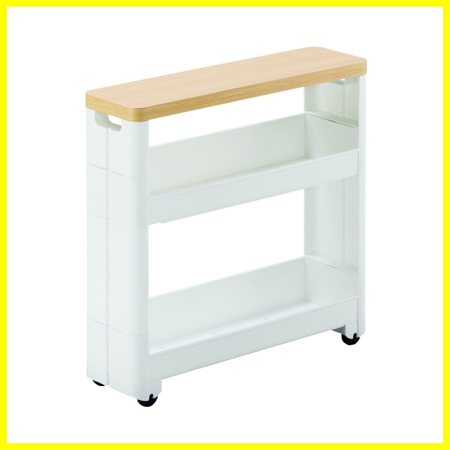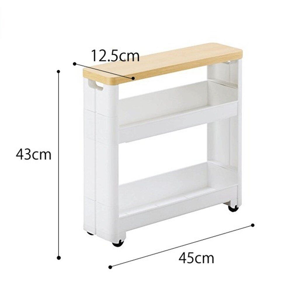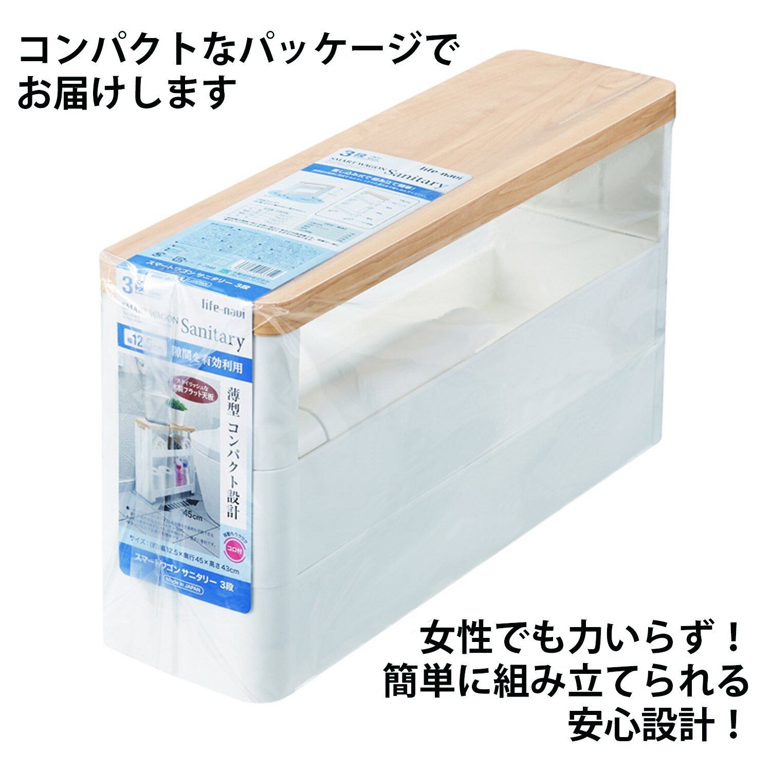 不動技研 スマートワゴン サニタリー3段 ホワイト スリム スキマにたっぷり収納 フラット木製天板 キャスター付き 約幅12.5×奥行45×高さ43cm F2549 日本製