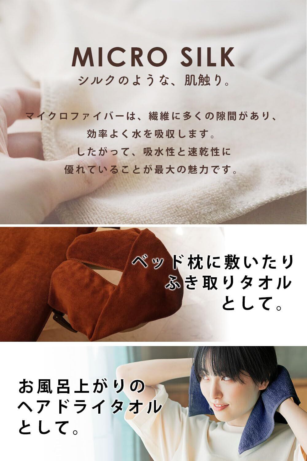 【 心地の良い肌触り 】 ■ マイクロファイバーは、綿とは異なる特性を持っています。繊維内に三角形の形状があるため水を効果的に吸収できます。さらに、マイクロファイバーはふわふわとした肌触りがあり、弾力性もあります。触れると心地よく、柔らかな感触があります。