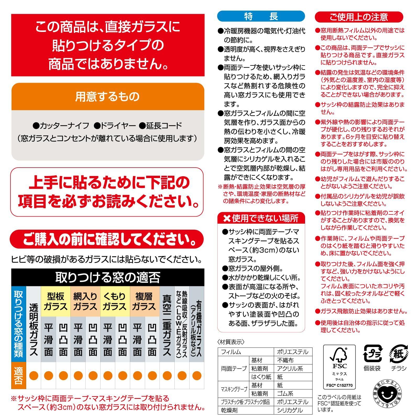●従来の水貼りと違い、窓枠に両面テープで貼り付けることで2重ガラス構造を作り出し、シートとガラスの間にできる空気層が保温・断熱効果を発揮する