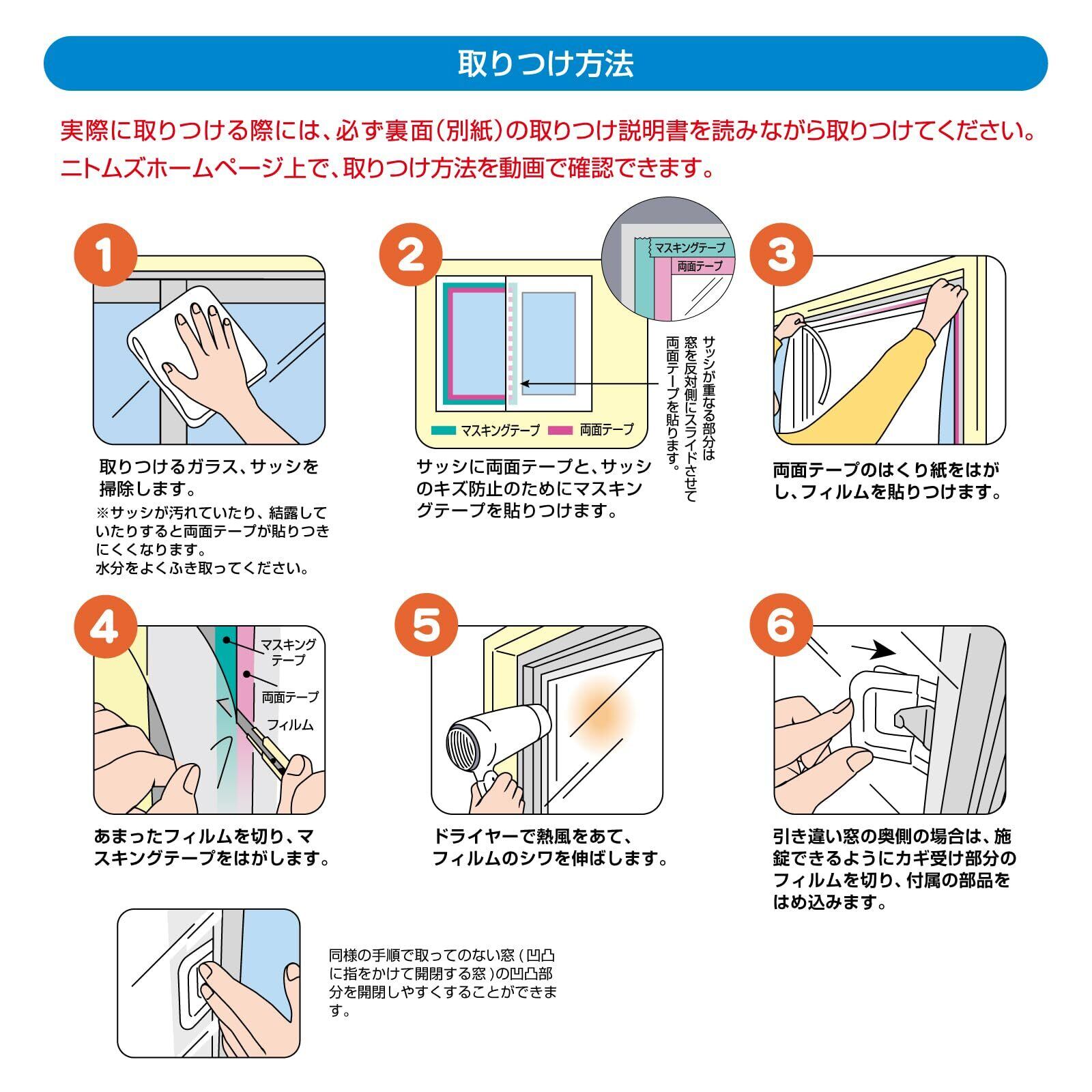 ●※サッシ枠に両面テープ・マスキングテープを貼るスペース(約3cm)のない窓ガラスには取り付けられない