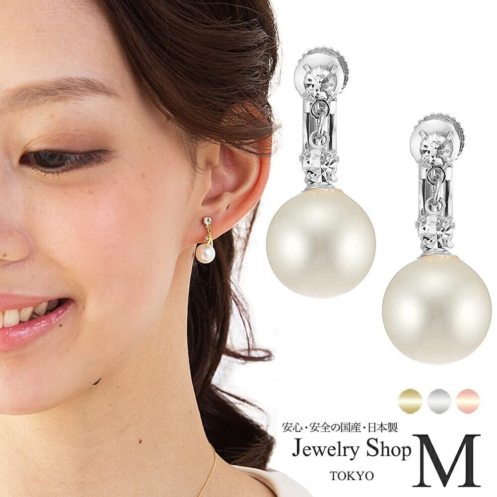 [ジュエリーショップエム] 日本製 直結 ストーン パール 真珠 シンプル イヤリング ねじ式 金属アレルギー対応 レディース