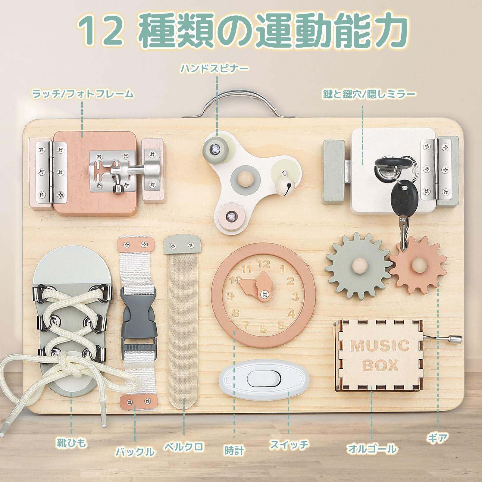 Joyreal モンテッソーリ ビジーボード - 知育玩具 1 2 3歳 誕生日プレゼント 玩具 女の子 男の子 子供のおもちゃ 木のおもちゃ 指先の知育 早期開発