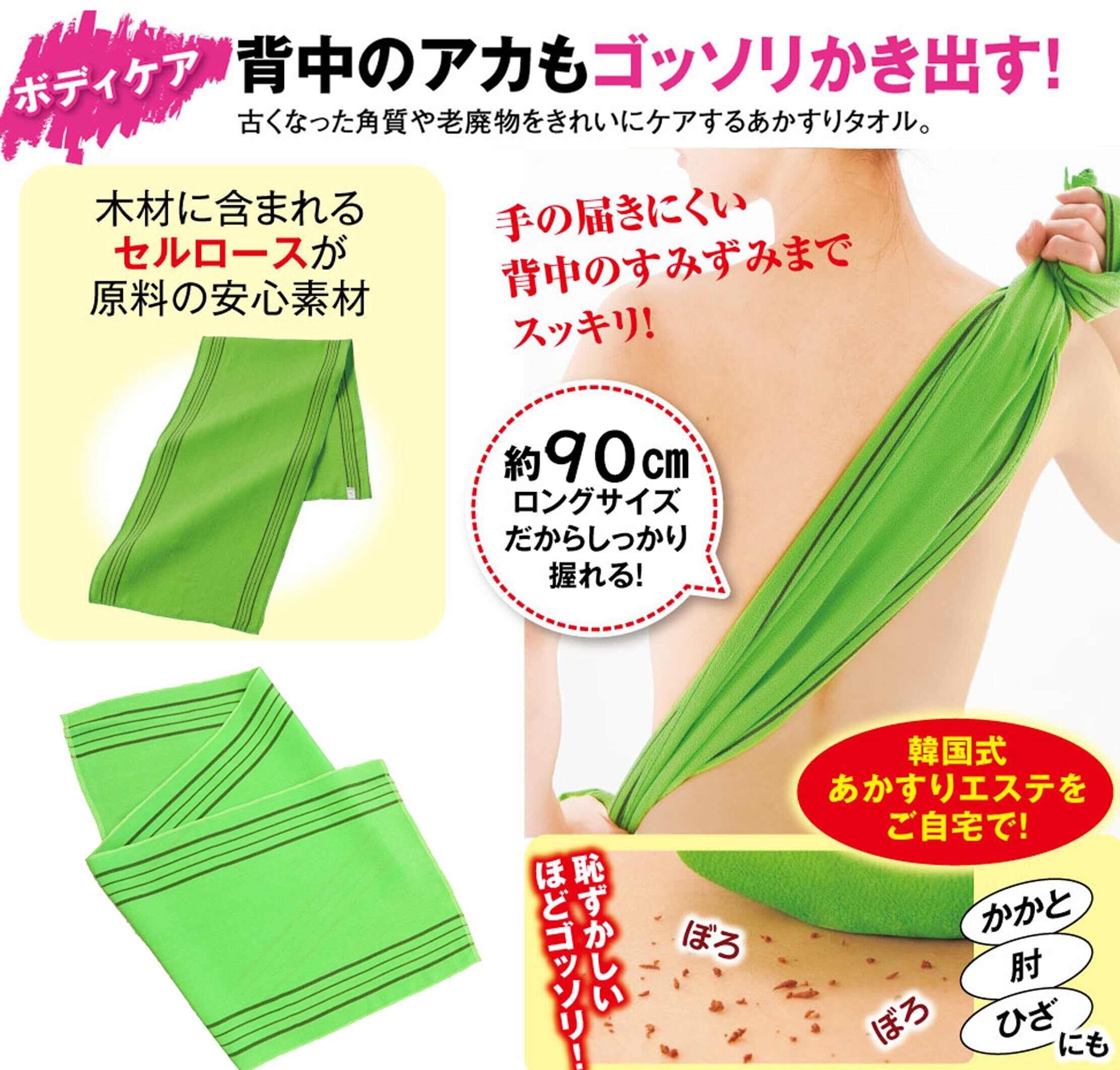 あかすりタオル 元祖 韓国製 背中も らくらく タオルタイプ 硬め