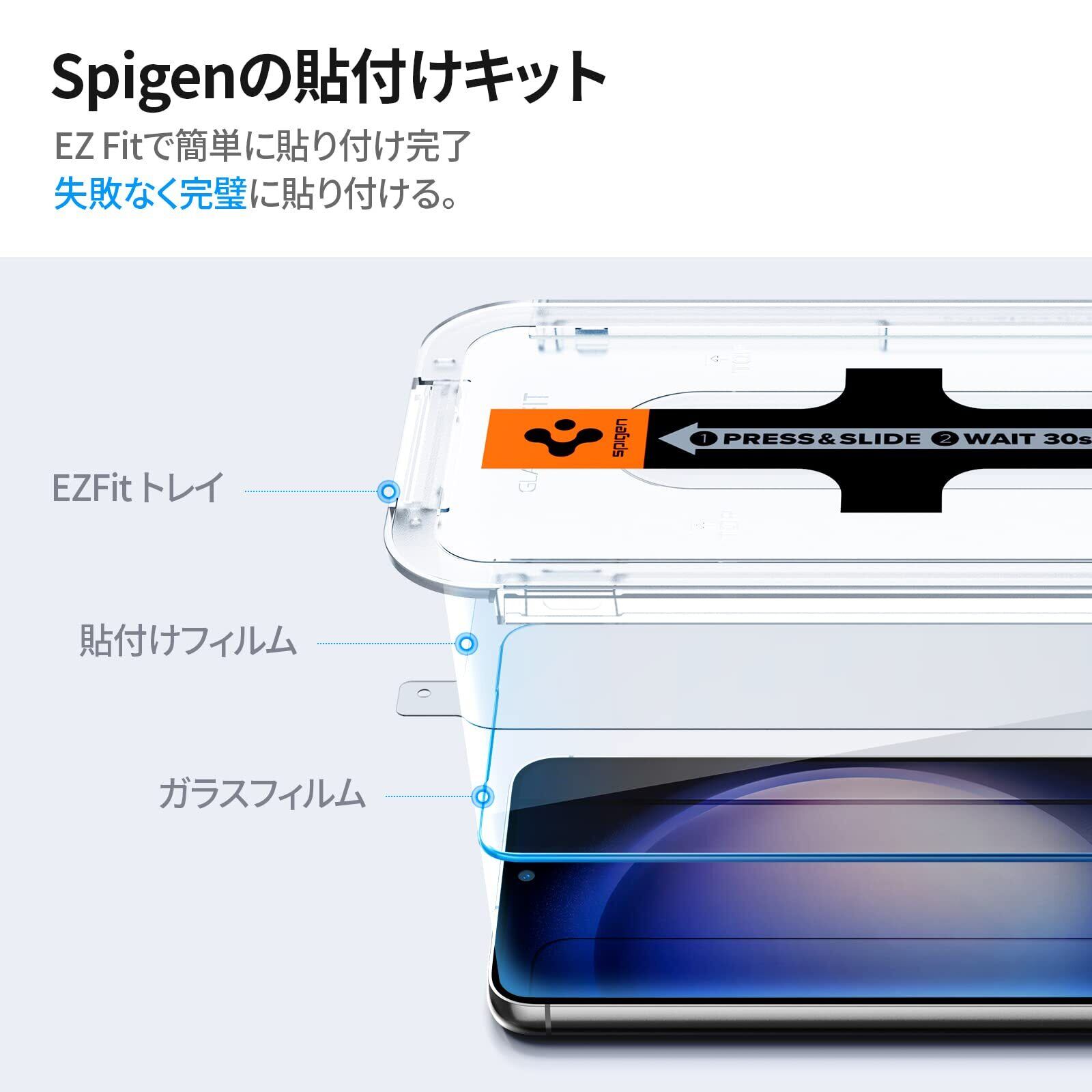 Spigen EZ Fit ガラスフィルム Galaxy S23 Plus 用 貼り付けキット付き 指紋認証 対応 ギャラクシー S23 Plus 対応 保護 フィルム 2枚入