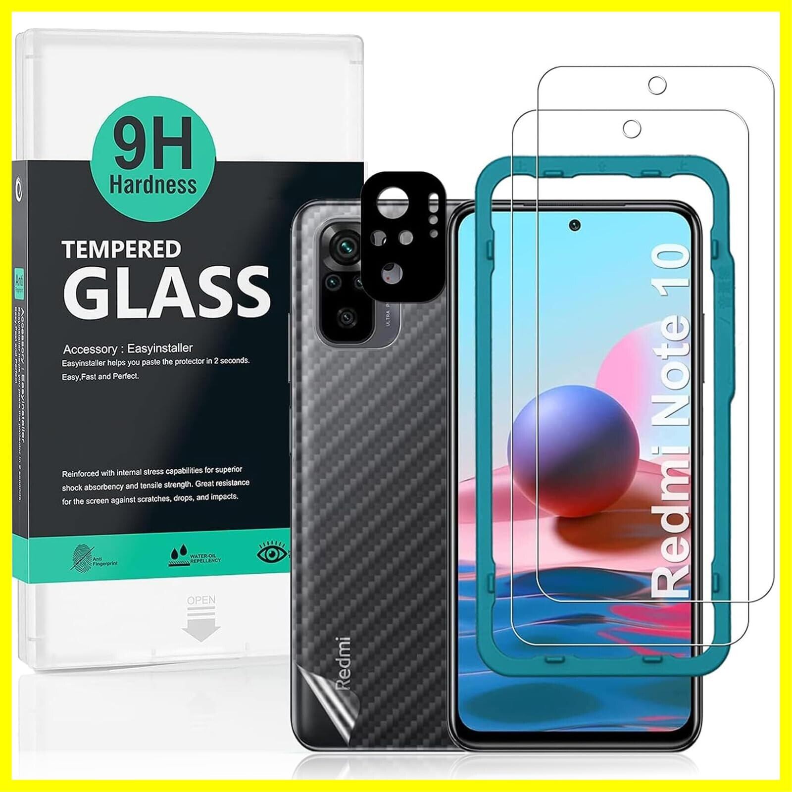 Ibywind 対応 Redmi Note 10(4G)/Note 10S ガラスフィルム 2 枚保護フィルム ガイド枠付き レンズカバー(1枚)背面シート(1枚) すり傷防止耐衝撃硬度 9H強化ガラスフィルム【滑らかな手触り】【気泡ゼロ】【指紋認証対応 超簡単貼り付け】