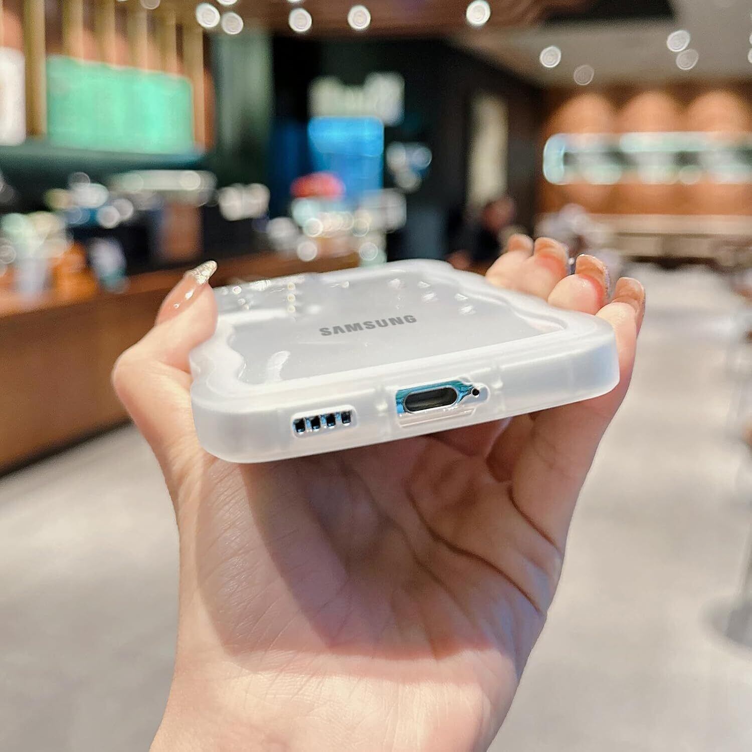 透明感 ▪ フィット感:背面は透明度ポリカーボネートの素材で、Galaxy A52本来の美しさと高級感をそのままに映り出し、あなたの携帯電話は、より美しさとファッションに見えるようにします。サイド周りのウェーブ部分は柔らかな素材のTPU素材で、デザインが手にフィットして持ちやすく、可愛い、流行りの韓国デザインです