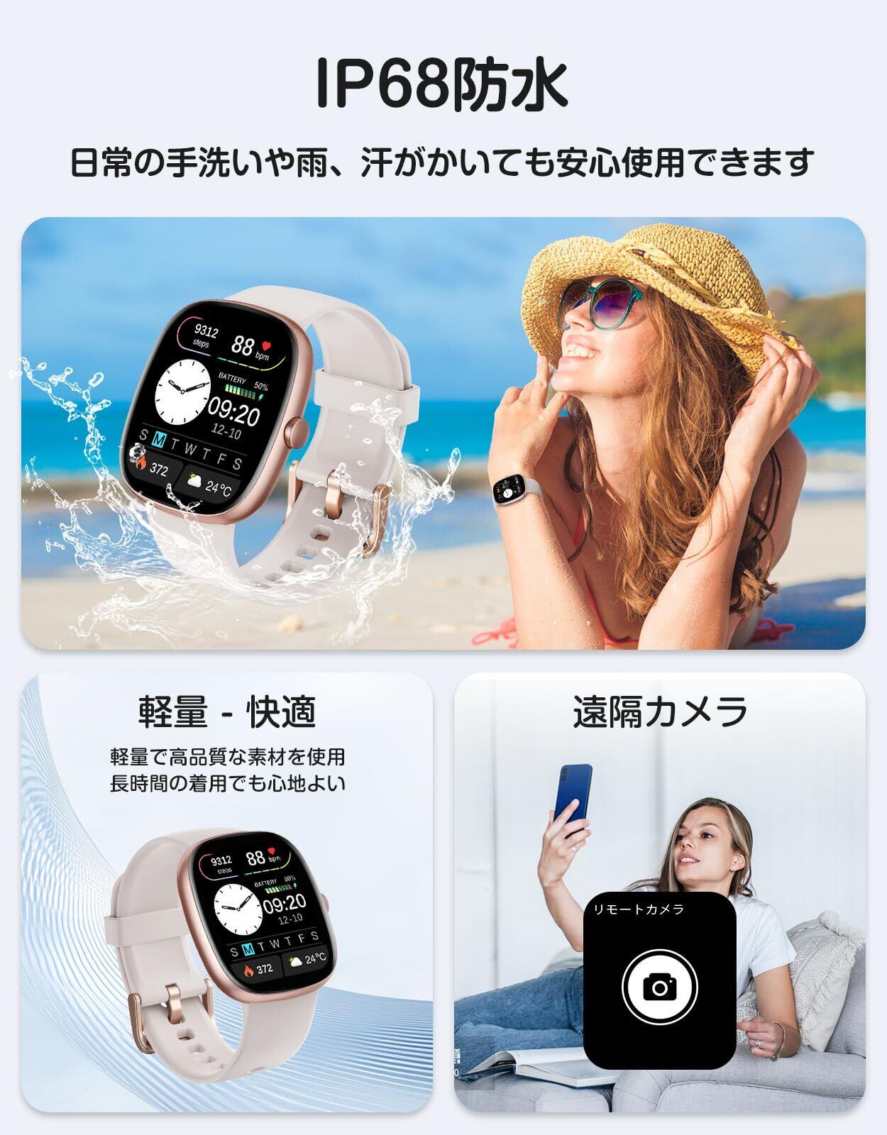 GRV スマートウォッチ iPhone アンドロイド対応 通話機能付き 2025新登場 腕時計 Smart Watch 長持ちバッテリー Line 着信通知 100種類運動モード 腕上げ点灯 IP68防水 DIY文字盤 日本語アプリ 説明書