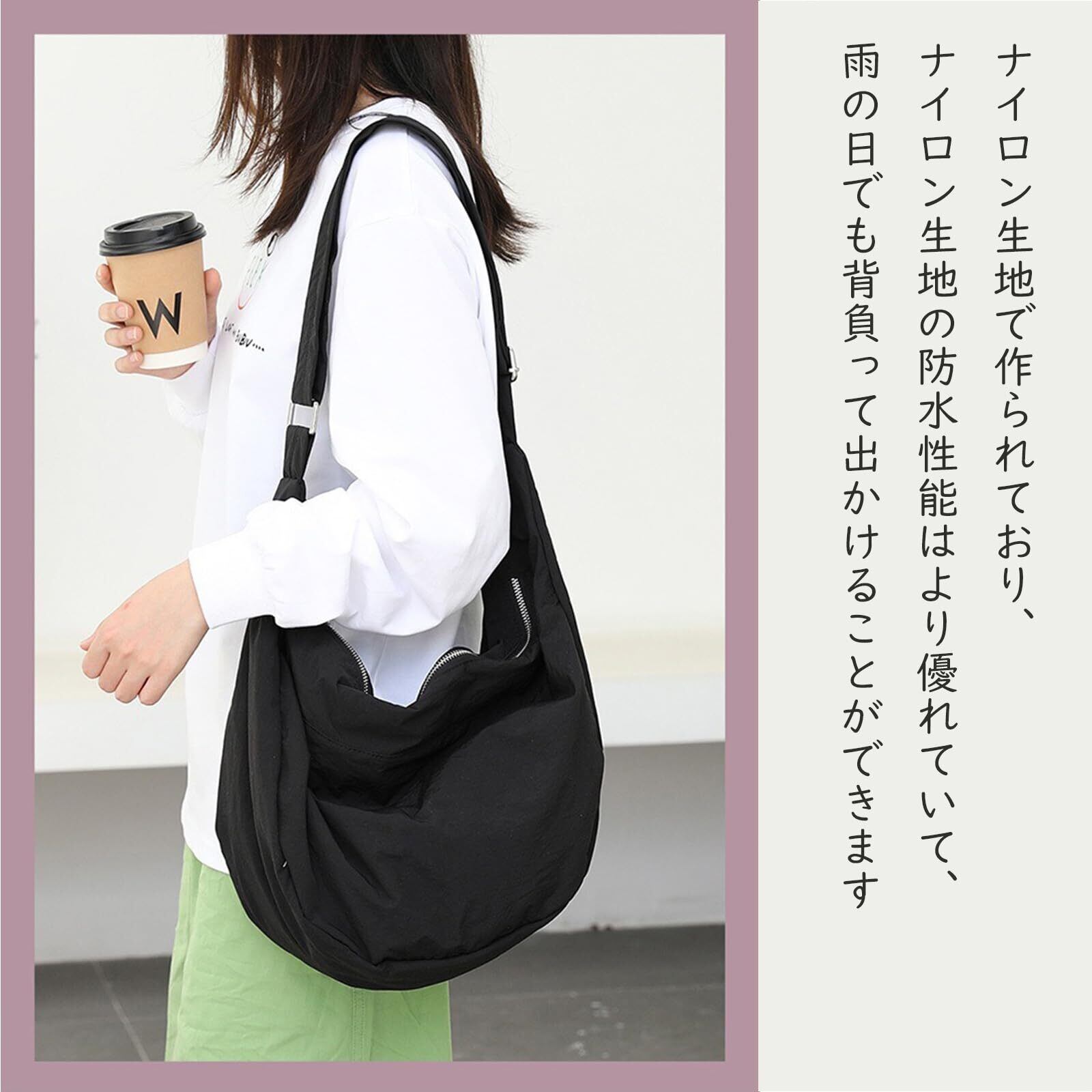 [Tuten] ショルダーバッグ レディース 軽量 斜め掛けバッグ ナイロン 防水 餃子バッグ 無地 おしゃれ カバン 調節可能肩ベルト 柔らかい シンプル
