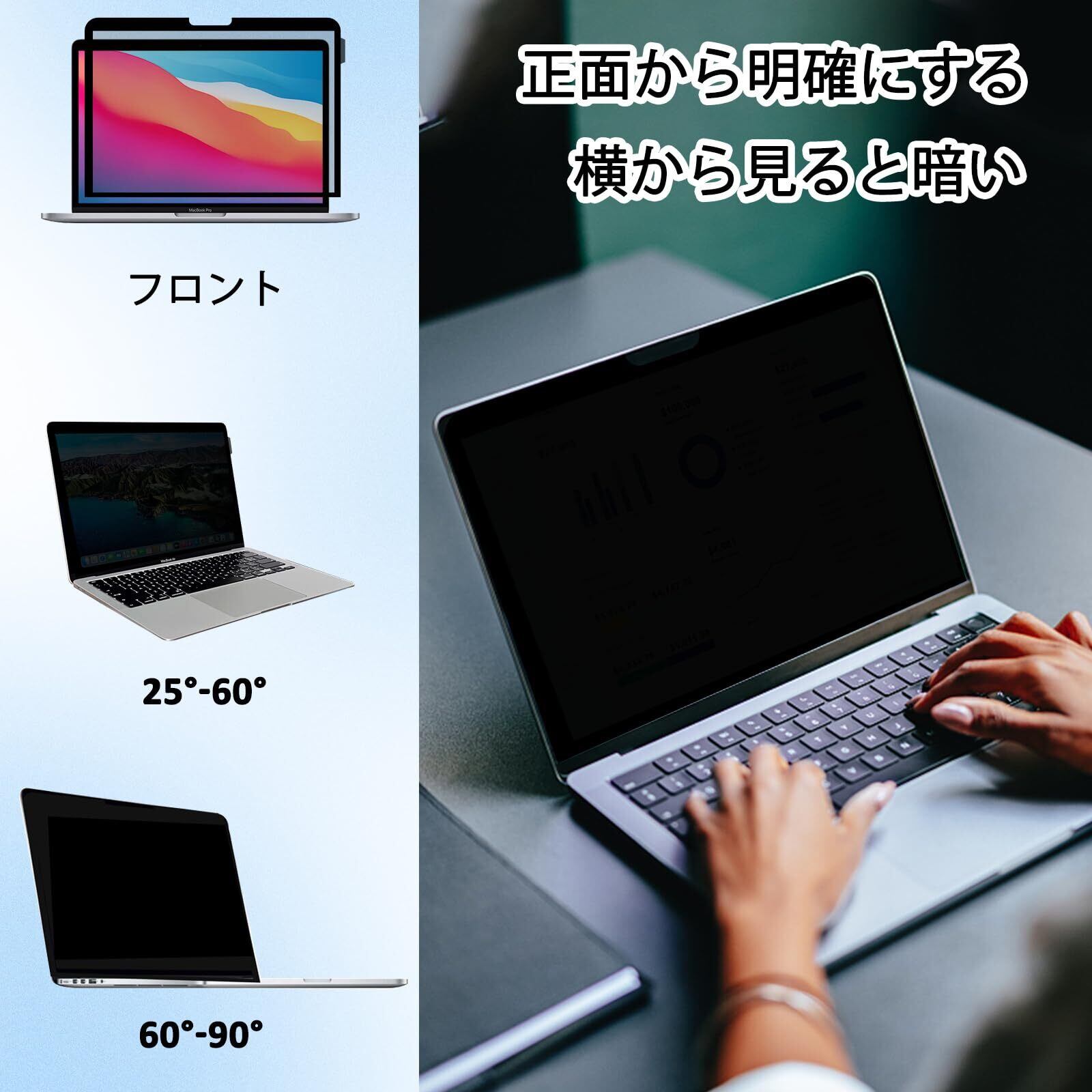 Macbook Pro 13 スクリーンプロテクター プライバシー保護の向上: 磁気スクリーン保護フィルターは、オフィス、公共エリア、混雑したエリアに最適です。 視野角は +/- 30 度に制限されます。 データはモニターの真正面にいる人にのみ表示され、隣にいる人には何も表示されません。