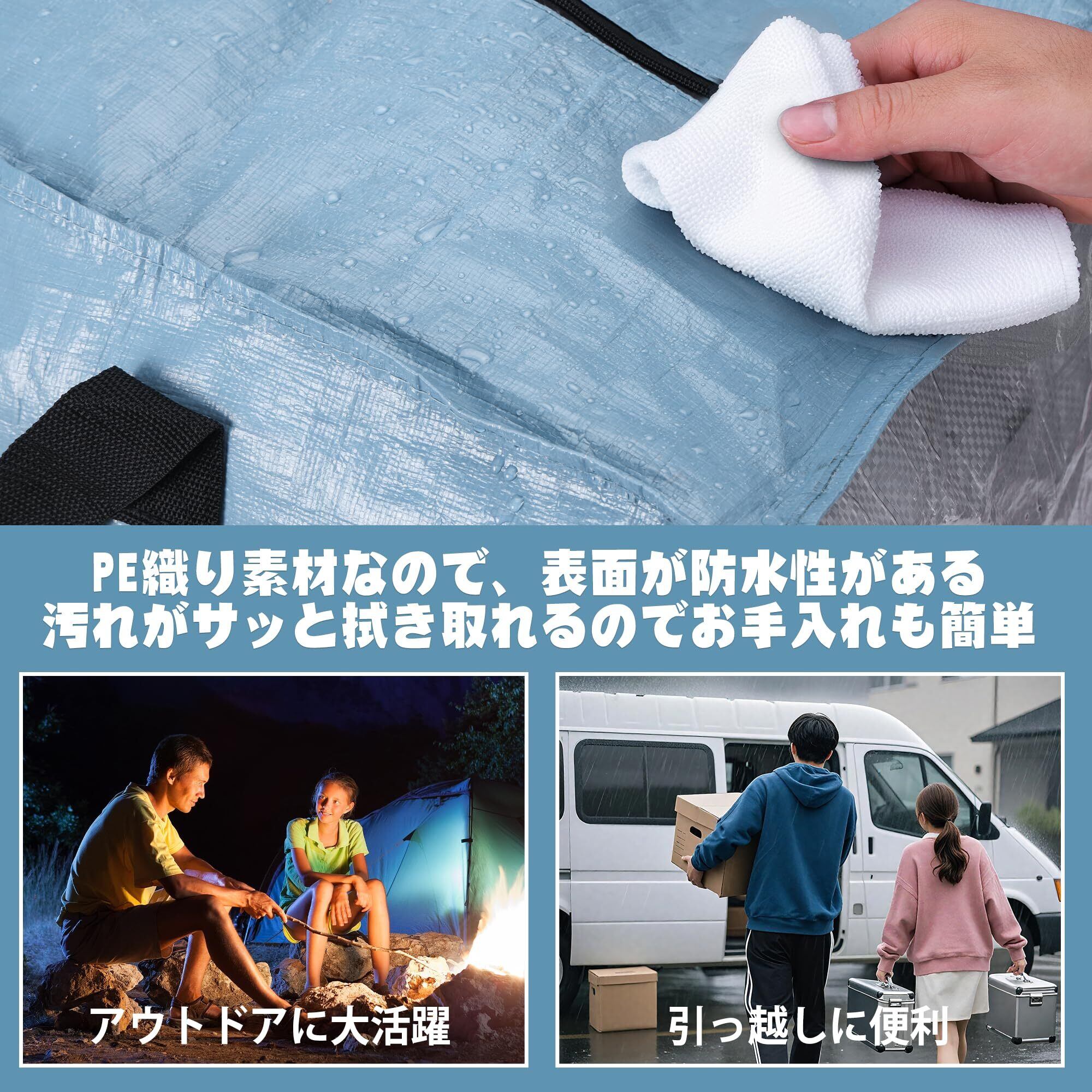 【防塵·防水·防虫】PE織り素材で作られ、強度が備えて、表面が防水性があります(ファスナーや縫製部分が防水性がない)。耐引裂性が抜群で、防塵が施されて、湿気がこもらなく、汚れを防ぎつつ、カビが生えたりダニが繁殖したり心配がありません。ウトドアやキャンプなどのアウトドアシーンでも使えます。