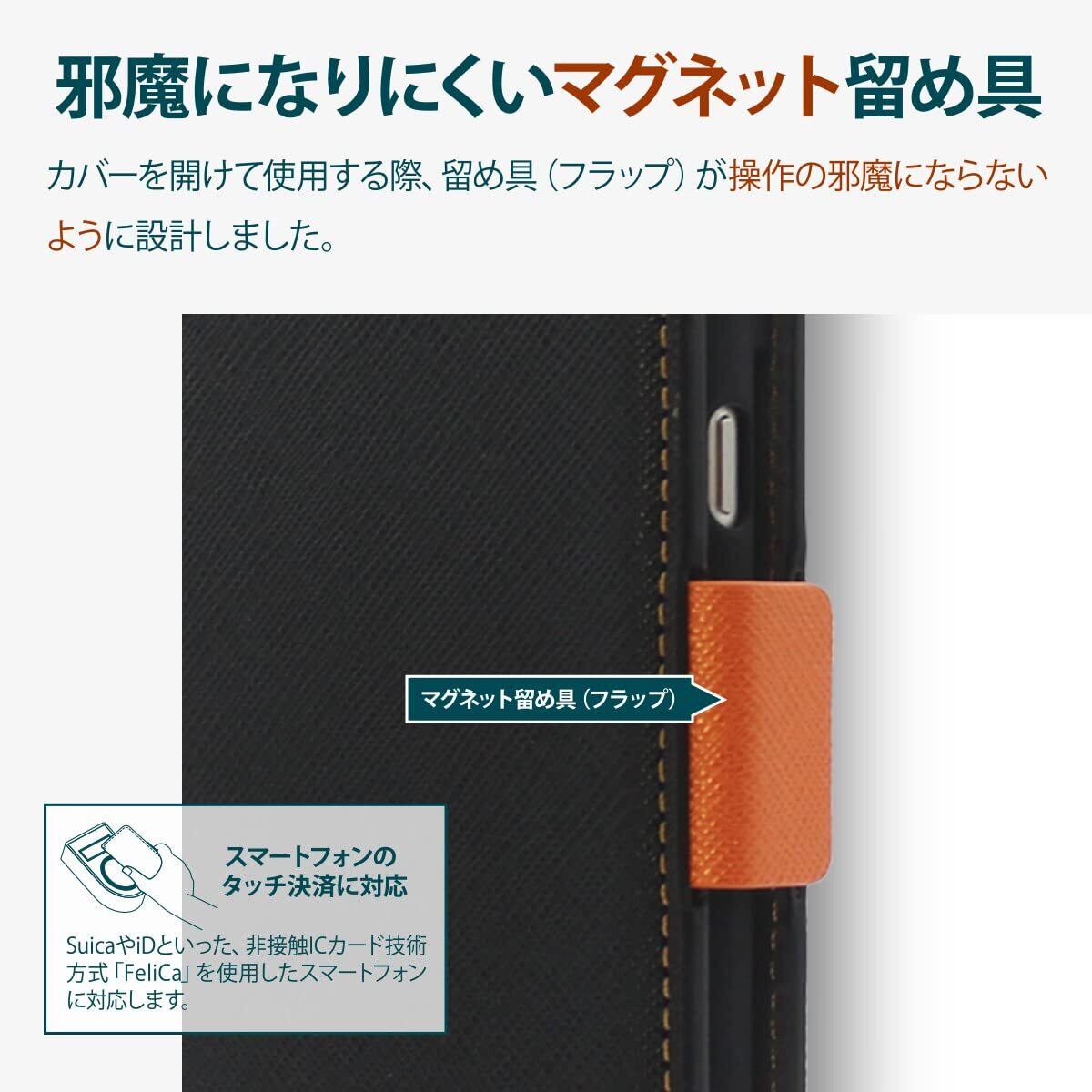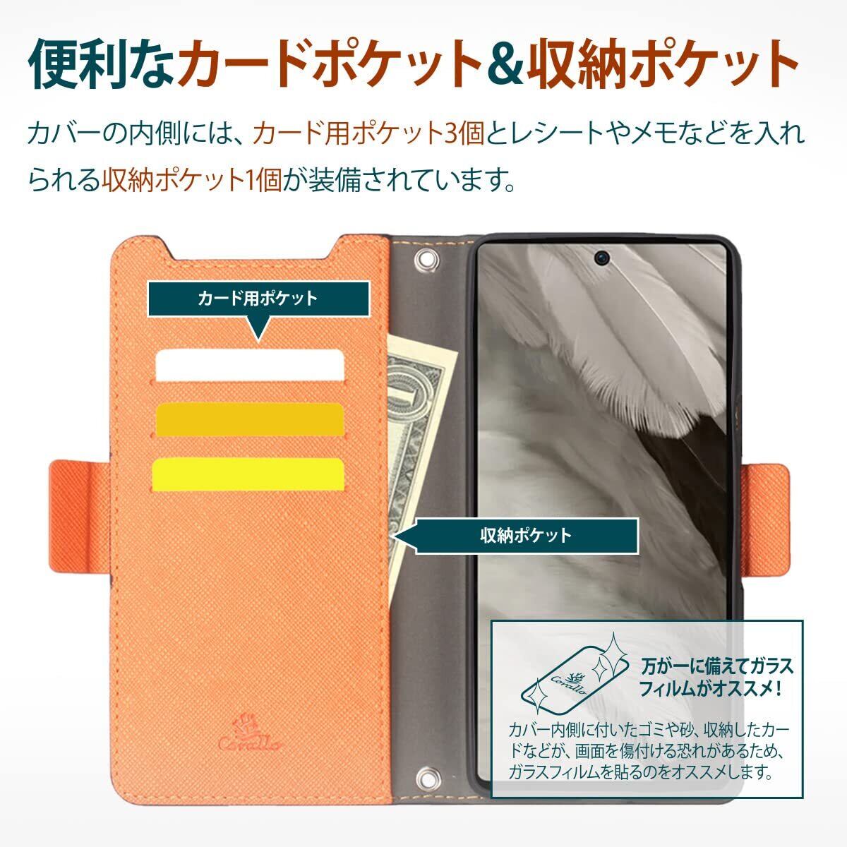 【Corallo】 Pixel 7a 対応 ケース 手帳型 カバー カード収納/ストラップ 付き 手帳 スマホケース マグネット ベルト 薄い 手帳型ケース カード 収納 スタンド 付 サフィアーノ レザー 皮 手帳型カバー 携帯カバー [ Google Pixel7a グーグル ピクセル 7a ピクセル7a グーグルピクセル7a 対応 ] NU ブラック×オレンジ