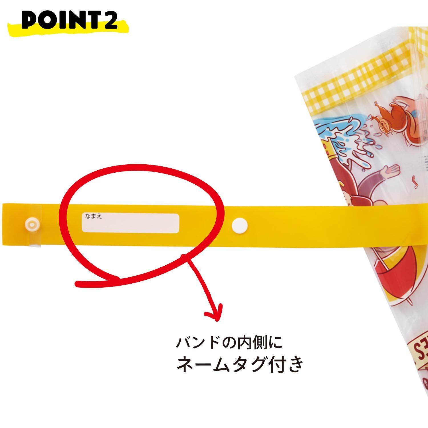 ベルトの内側に名前が書けるタグ付き
