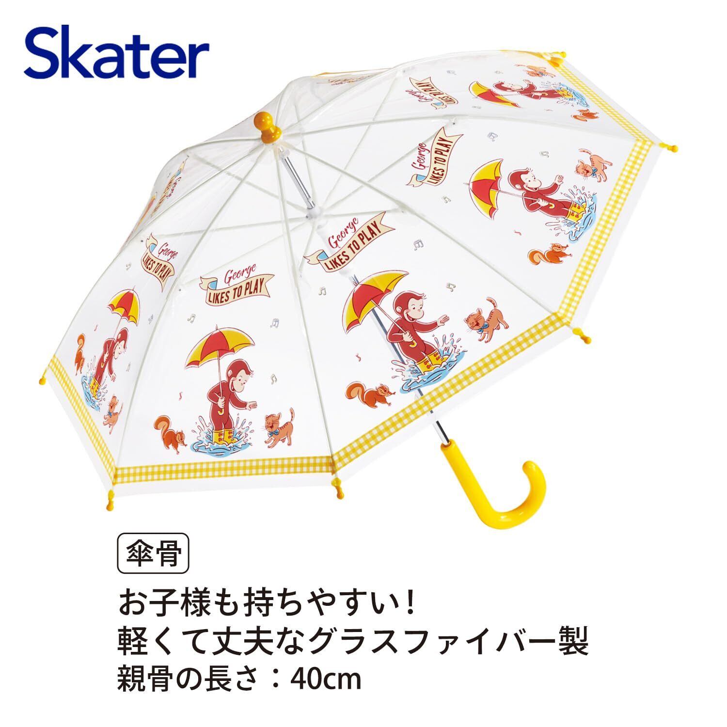 スケーター(Skater) 傘 子供用 ビニール傘 40cm おさるのジョージ 23 3~4才 95~105cm 指を挟みにくい手開き式 8本骨 ネームタグ付き UBV2-A