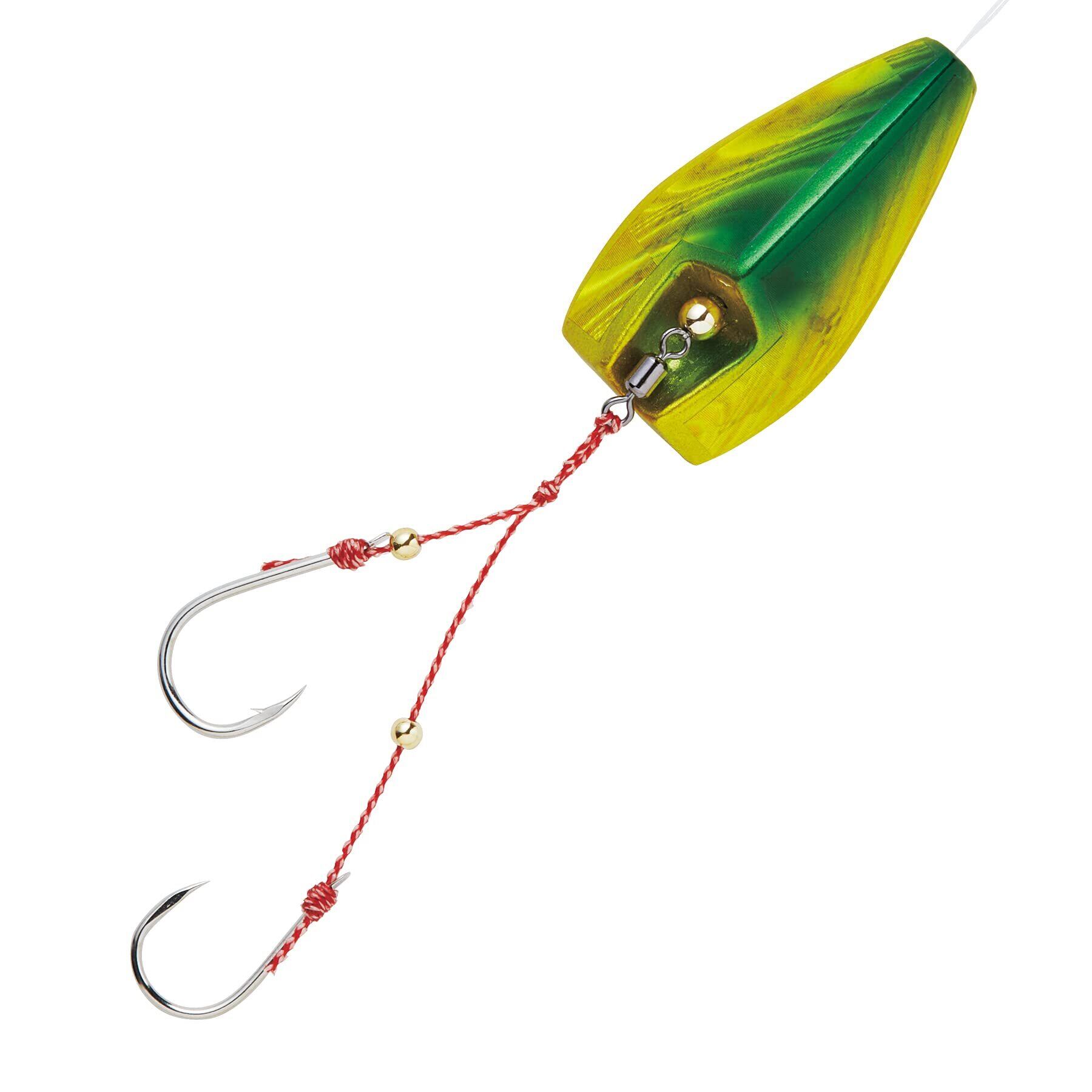 バラシ激減、高感度。リフト&フォールで妖しくゆらめくインチク形状。ロングシャンクが海エビをしっかりホールドする小鯛鈎使用。ヘッドとフックを遊動にする事によりフックUP後の鯛特有の首振りによるバラシを激減。またフォール中にバイトしてきた鯛に違和感を与えず喰い込ませる事が可能になりました。