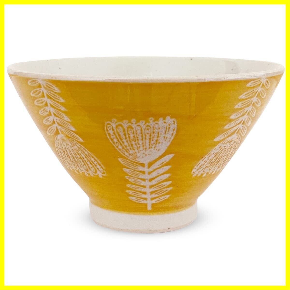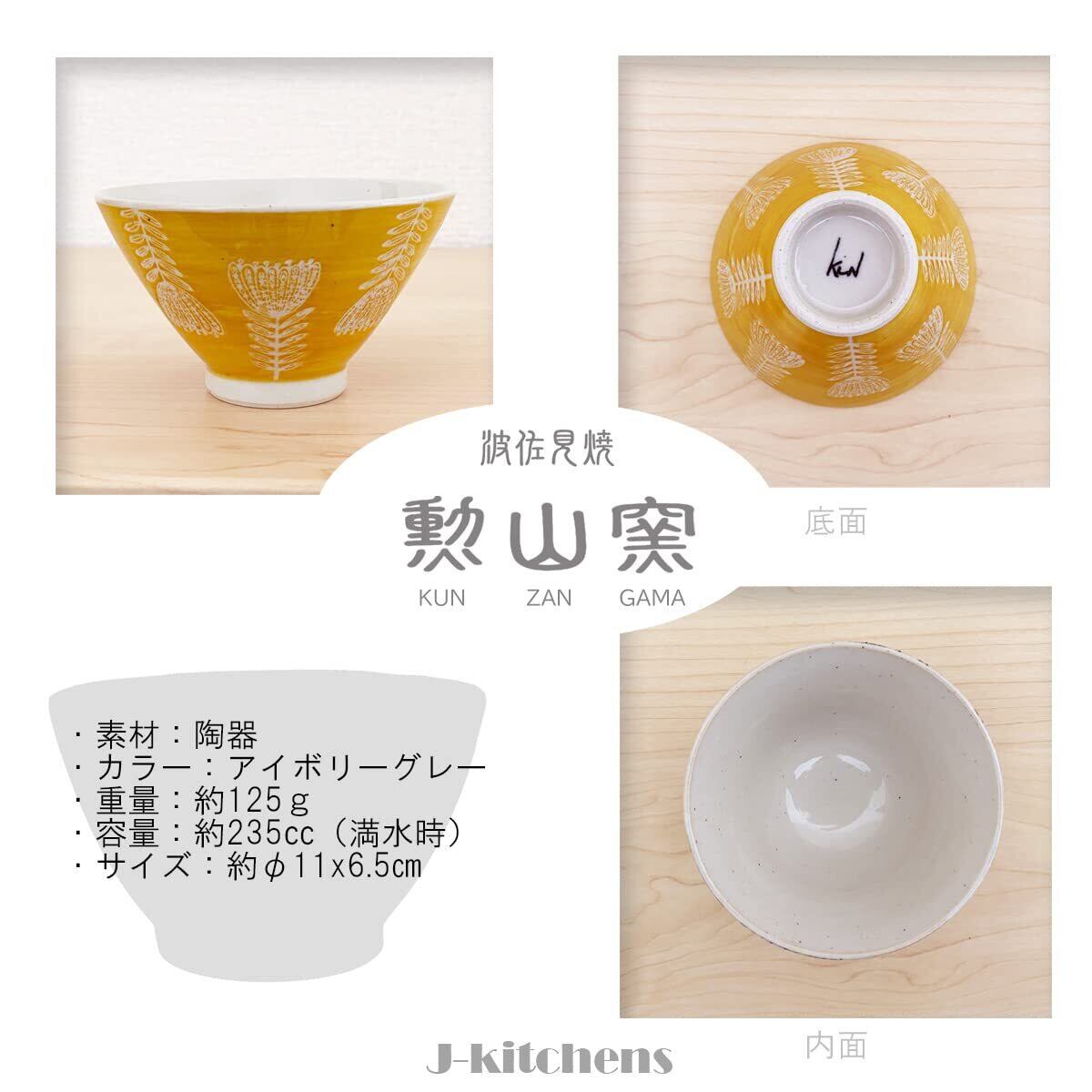 J-kitchens 勲山窯 茶碗 11cm 波佐見焼 日本製 北欧花紋 イエロー