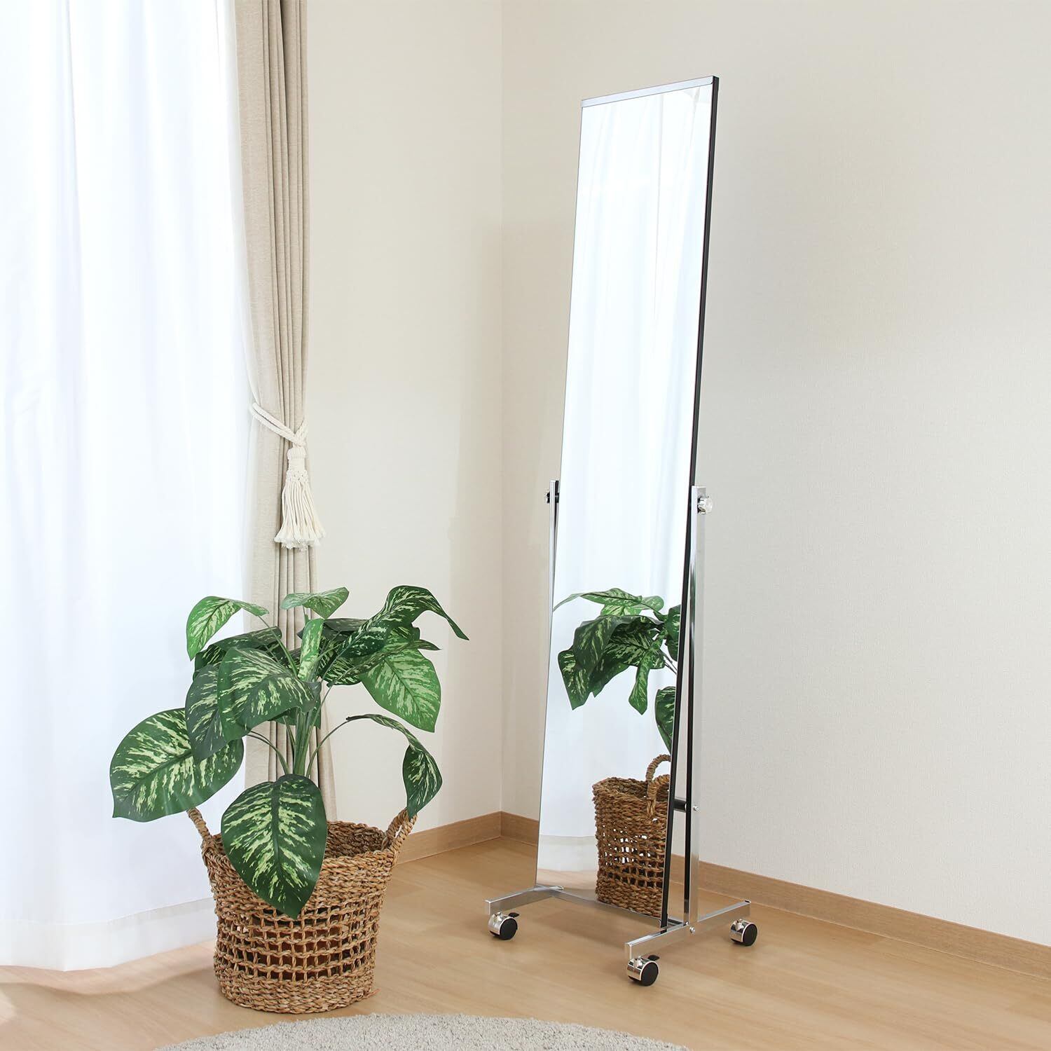 不二貿易 スタンドミラー キャスター付き 全身 姿見 鏡 幅37×奥行36×高さ159cm シルバー 角度調整 飛散防止 15547