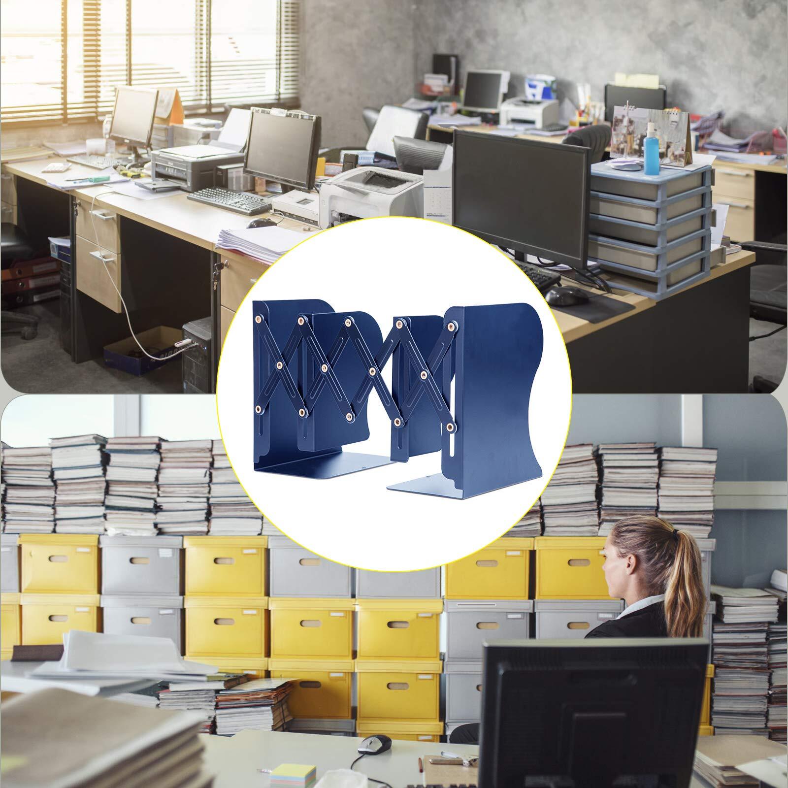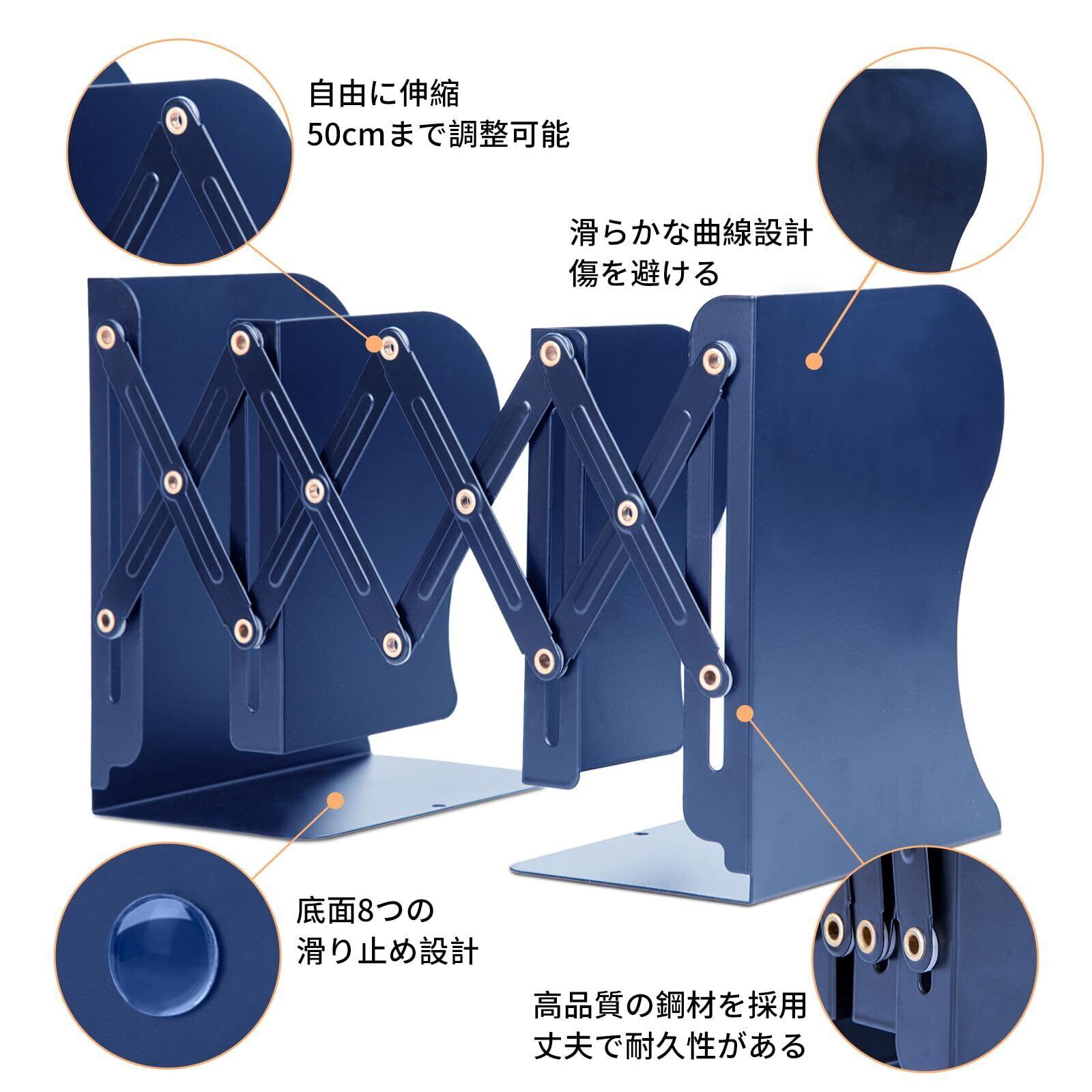 ブックエンド 伸縮 倒れない 本立て 滑らない 仕切りブックスタンド 金属製 卓上収納 書類 CD 教科書 A4ファイル収納 事務用品 文房具 子供部屋 デスク整理 ブルー