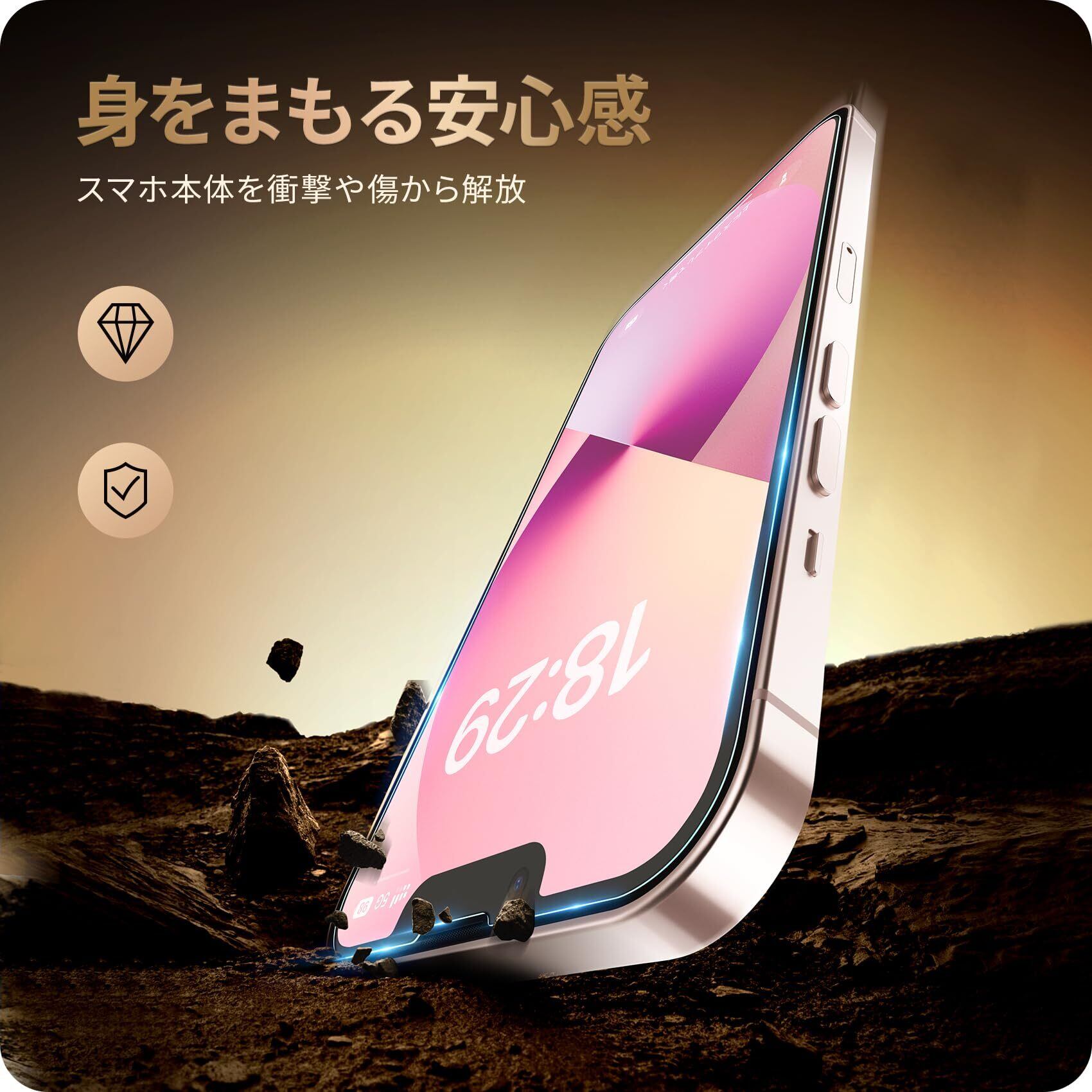 特徴 アンチグレア/気泡防止/指紋・汚れ防止/硬度9h/飛散防止/耐衝撃/高感度タッチ/貼付け簡単/快適な指滑り/自動吸着/防水/ホコリ防止