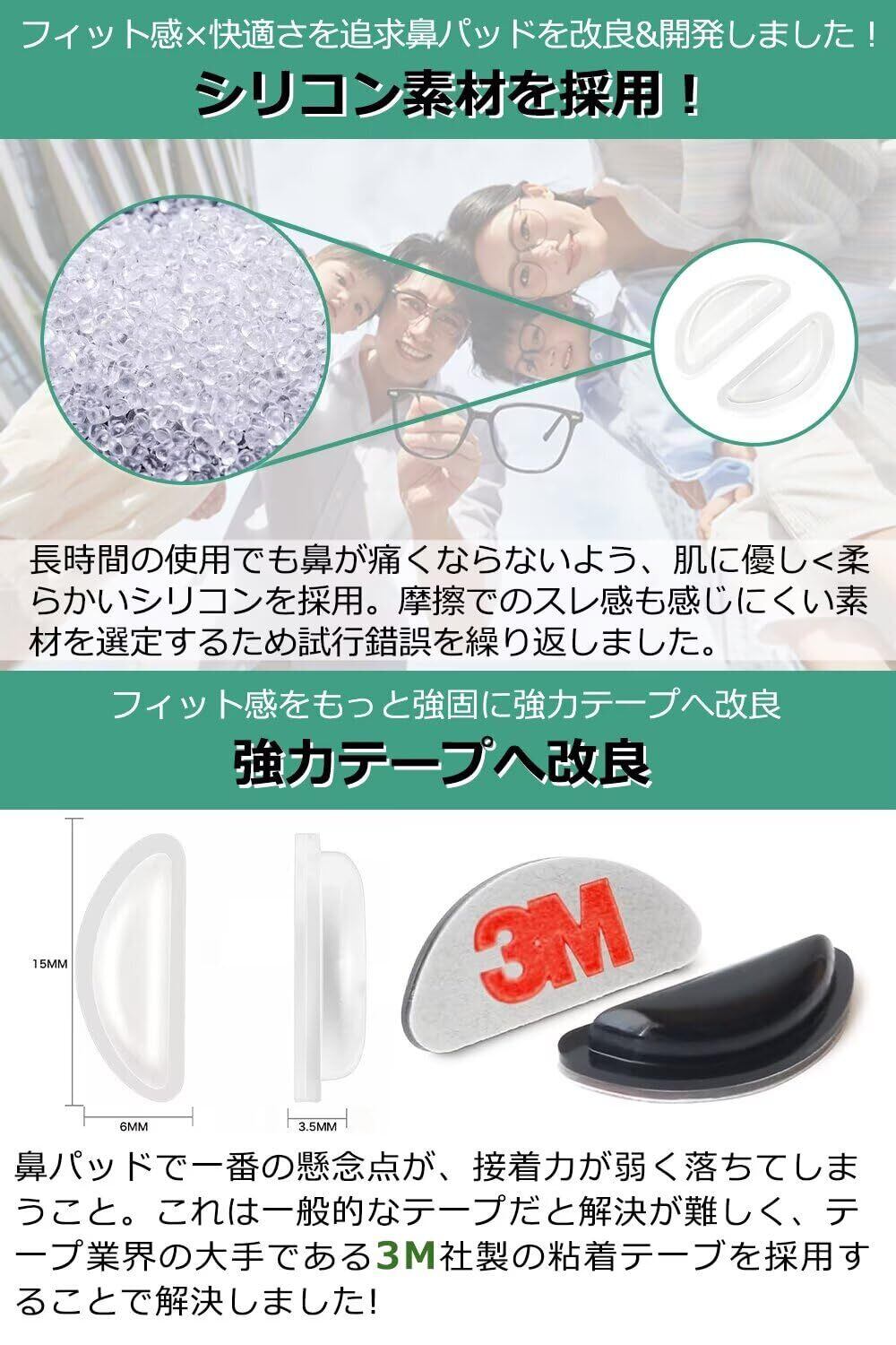 強力接着:パッドの接着面には3M社の強カシ一ルを採用。粘着力·耐久性が高く長期使用にも最適です。「通常のメガネ」や「老眼鏡」などの、鼻部分がプラスチック製の商品には、本商品はしっかり密着して快適に使用することができます。