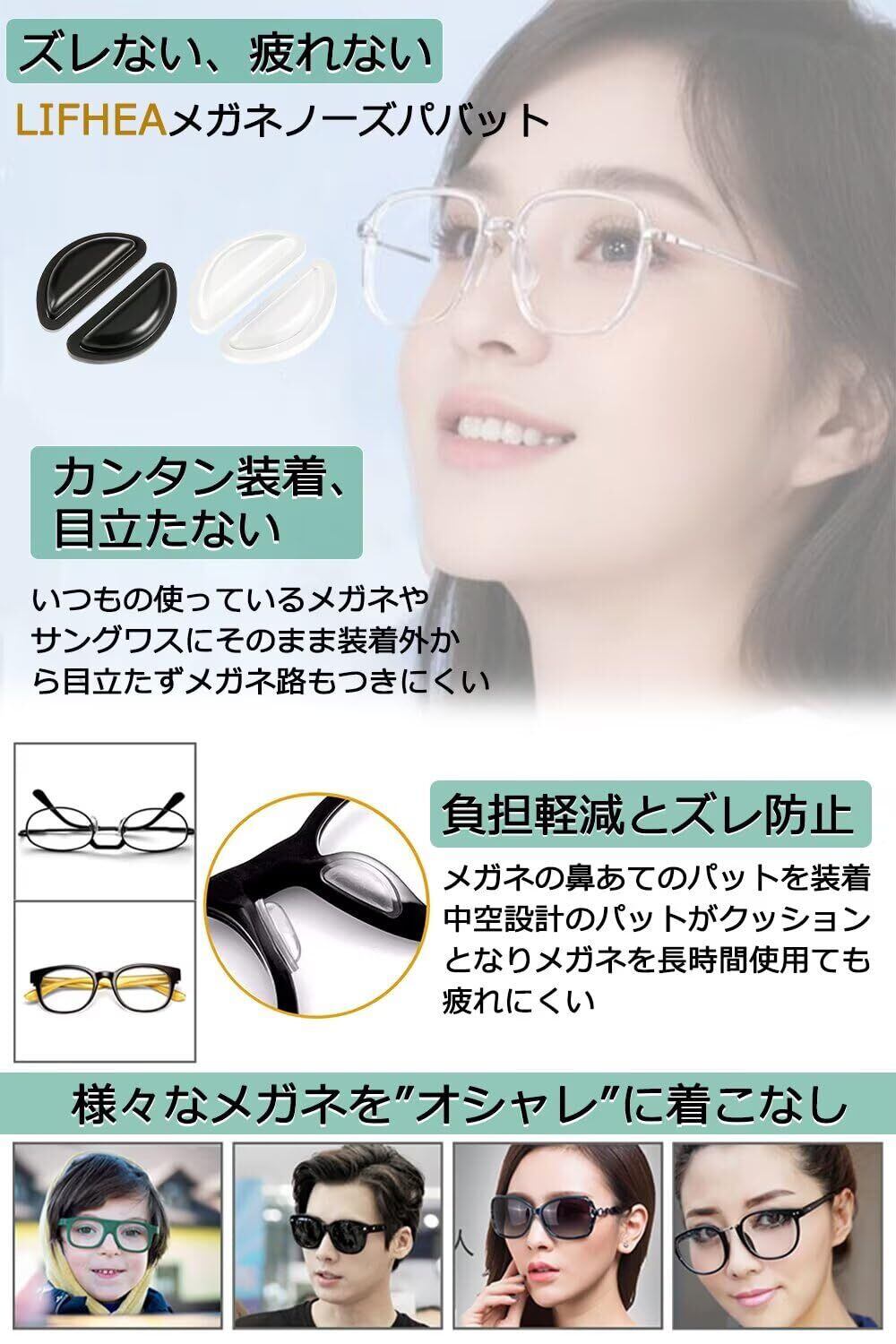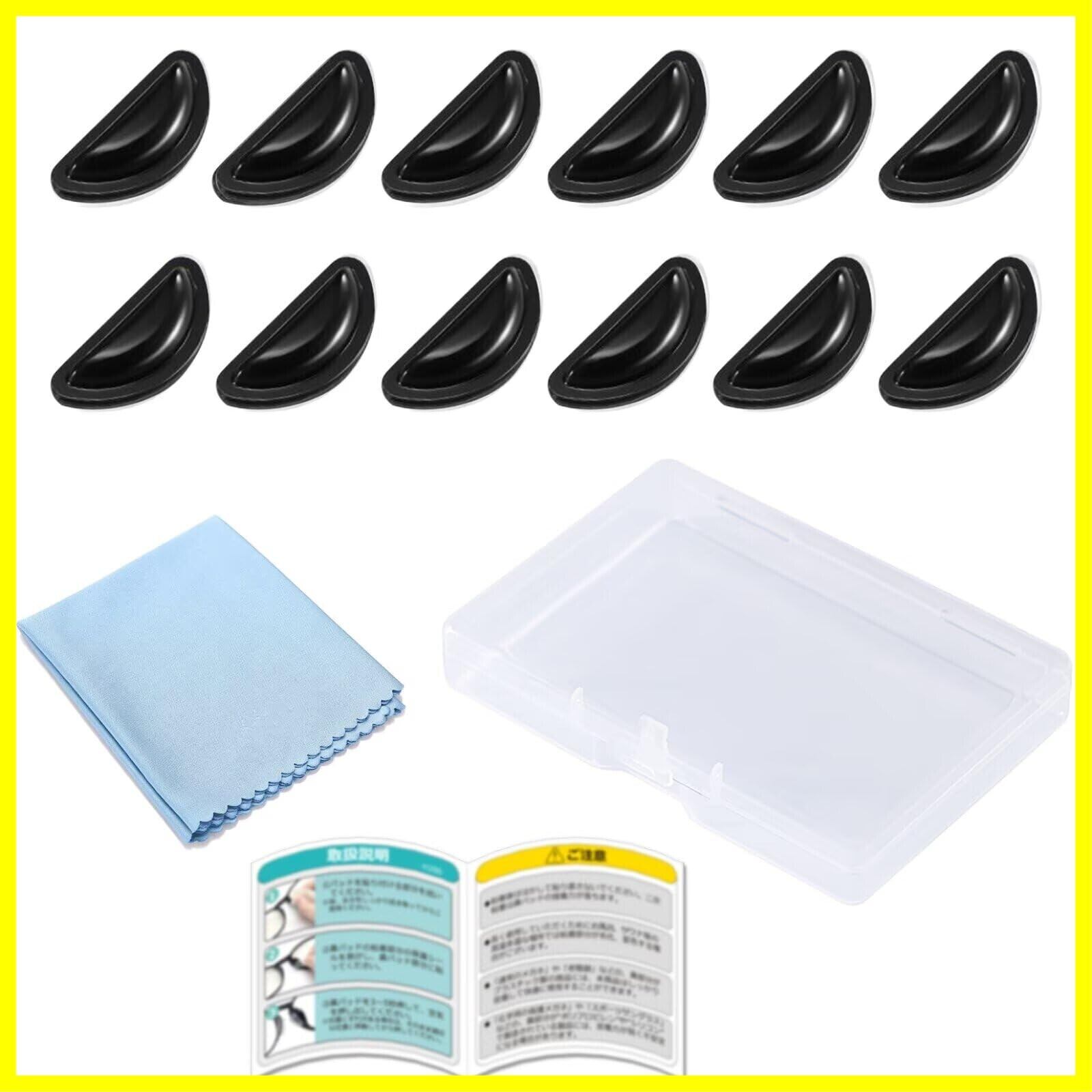 [LIFHEA] メガネ 鼻パッド 眼鏡 鼻あて シリコン ズレ防止 ノーズパッド 滑り止め 粘着式 12セット計24個 専用収納ケース・メガネクロス付き