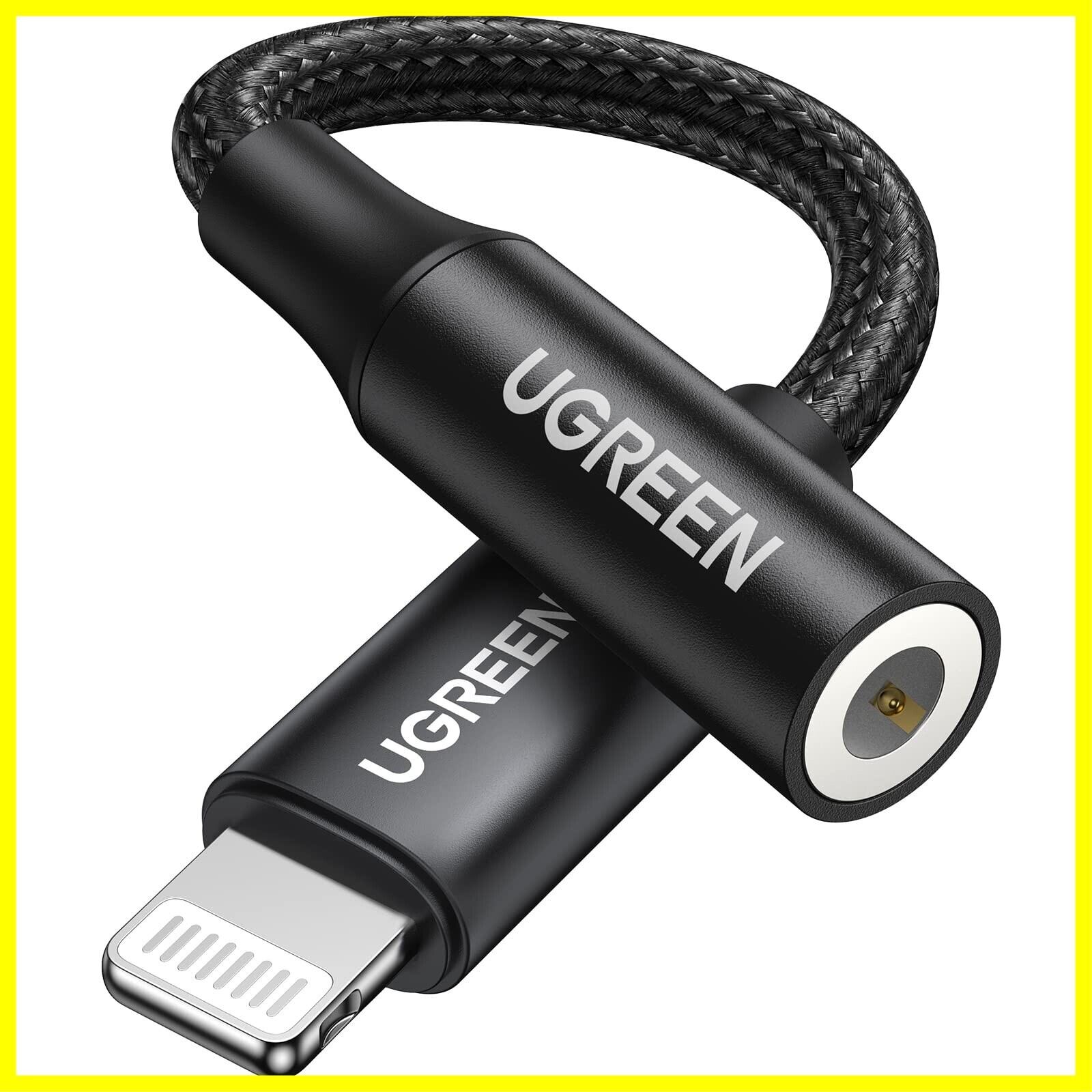 UGREEN 【MFi認証】 Lightning - 3.5 mm iPhone イヤホン 変換アダプタ ライトニング イヤホンジャック 変換 ナイロン編み 【ハイレゾ音質】 音量調節/通話/音楽対応 コントローラー付き lightning イヤホン 変換 iPhone7以降に対応 ブラック