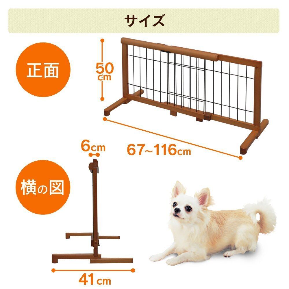 アイリスプラザ イヌ用 ペットゲート ブラウン×ブラック 高さ50cm 設置幅67-116cm