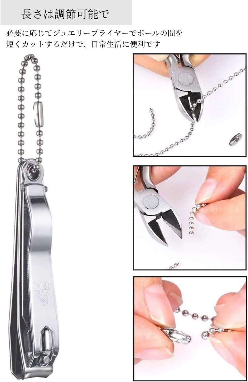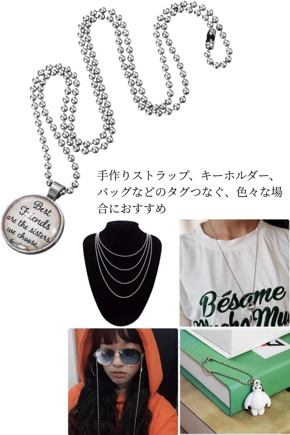 【調節可能】長さは調節可能で、カットされていないボールチェーンは、お使いになる長さに合わせてご自身で自由にカットしていただけます。
