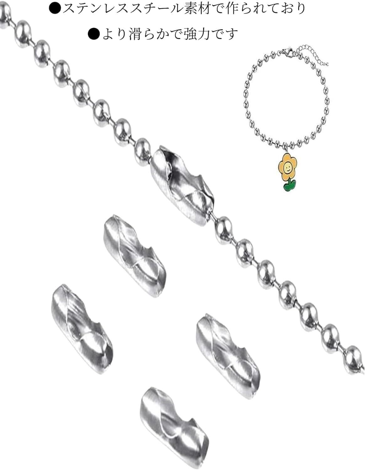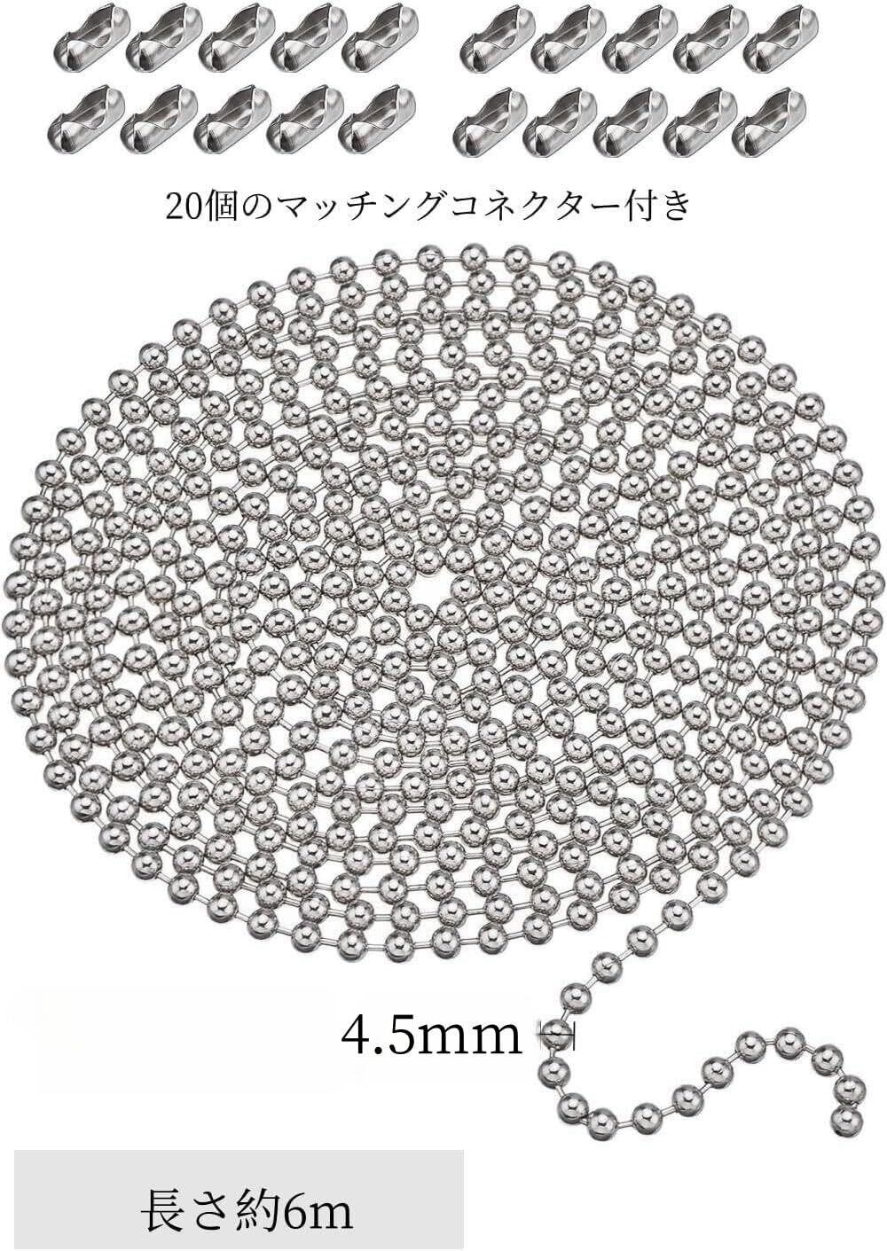 【セット内容】6メートルのシルバーメタルビーズチェーン+20個のマッチングコネクター付き、チェーンの太さ:4.5mm。