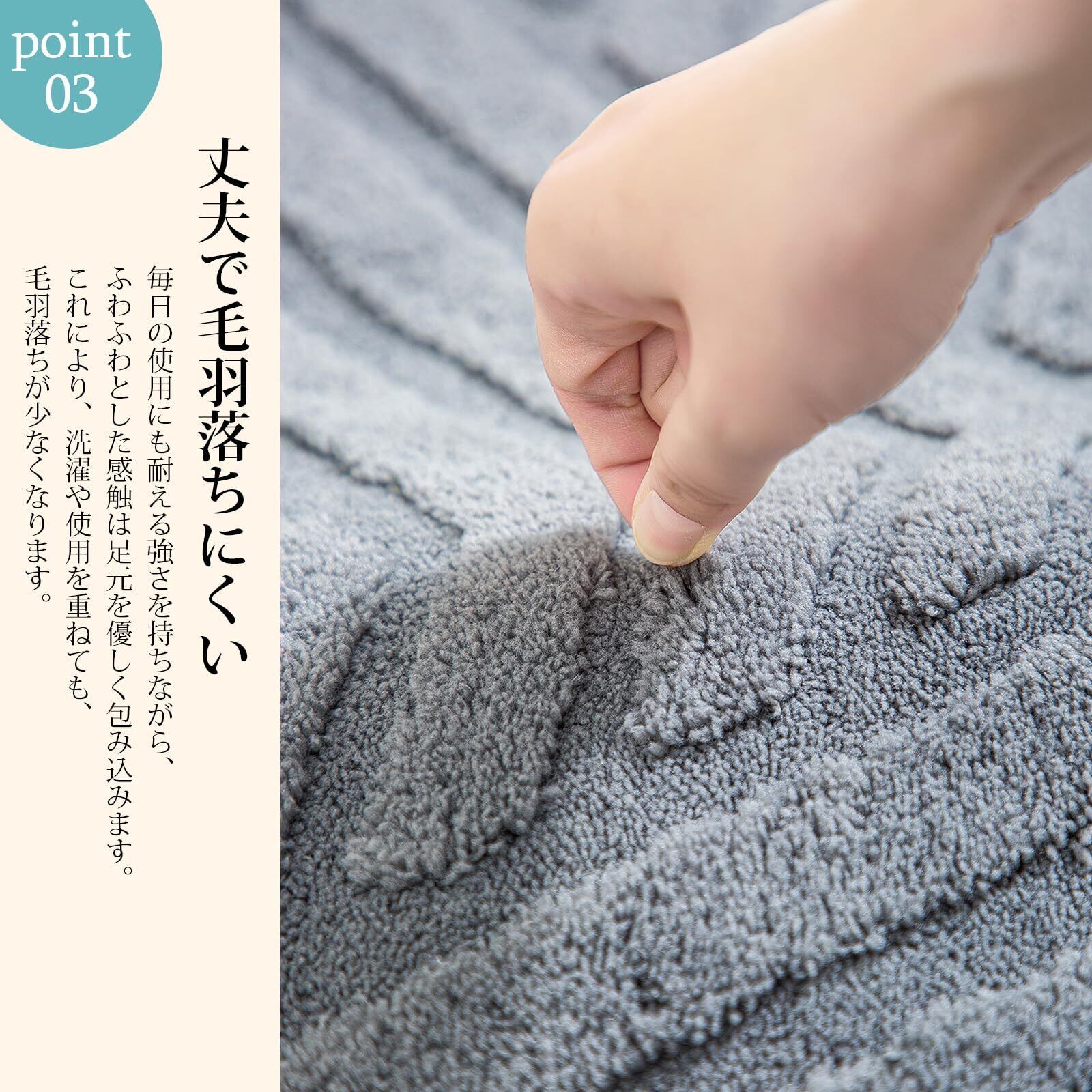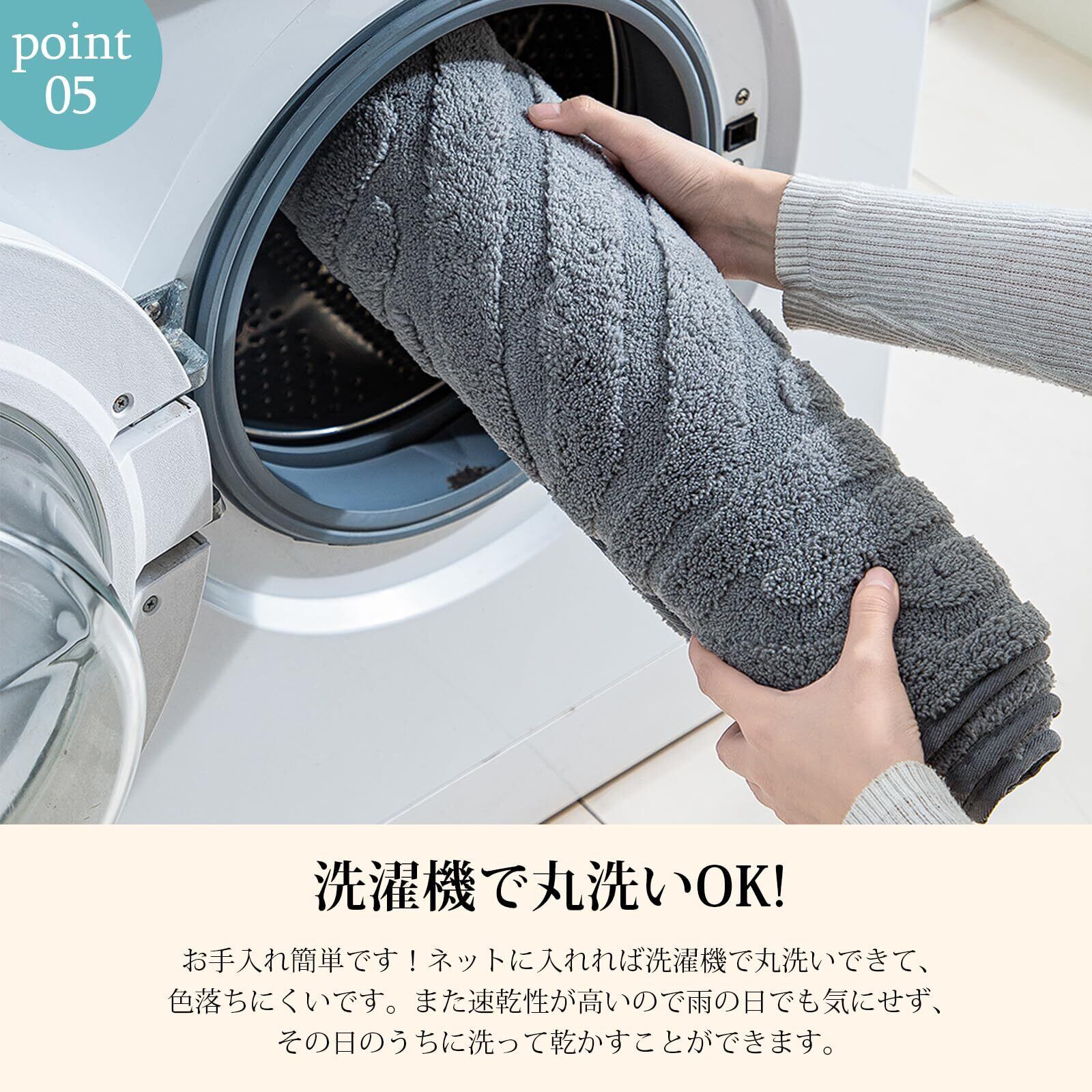 【ふわふわで柔らかい】素足で触れても心地よい、極上の肌触りをお楽しみいただけます。季節を問わずご使用いただけるので、春夏秋冬、どの季節でもお部屋に温かみを加えてくれます。さらに、速乾性に優れており、お手入れも簡単。濡れてもすぐに乾くので、安心してご使用いただけます。