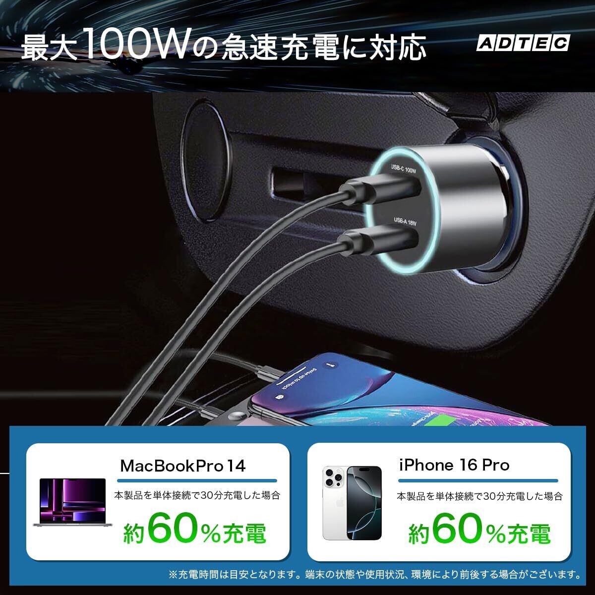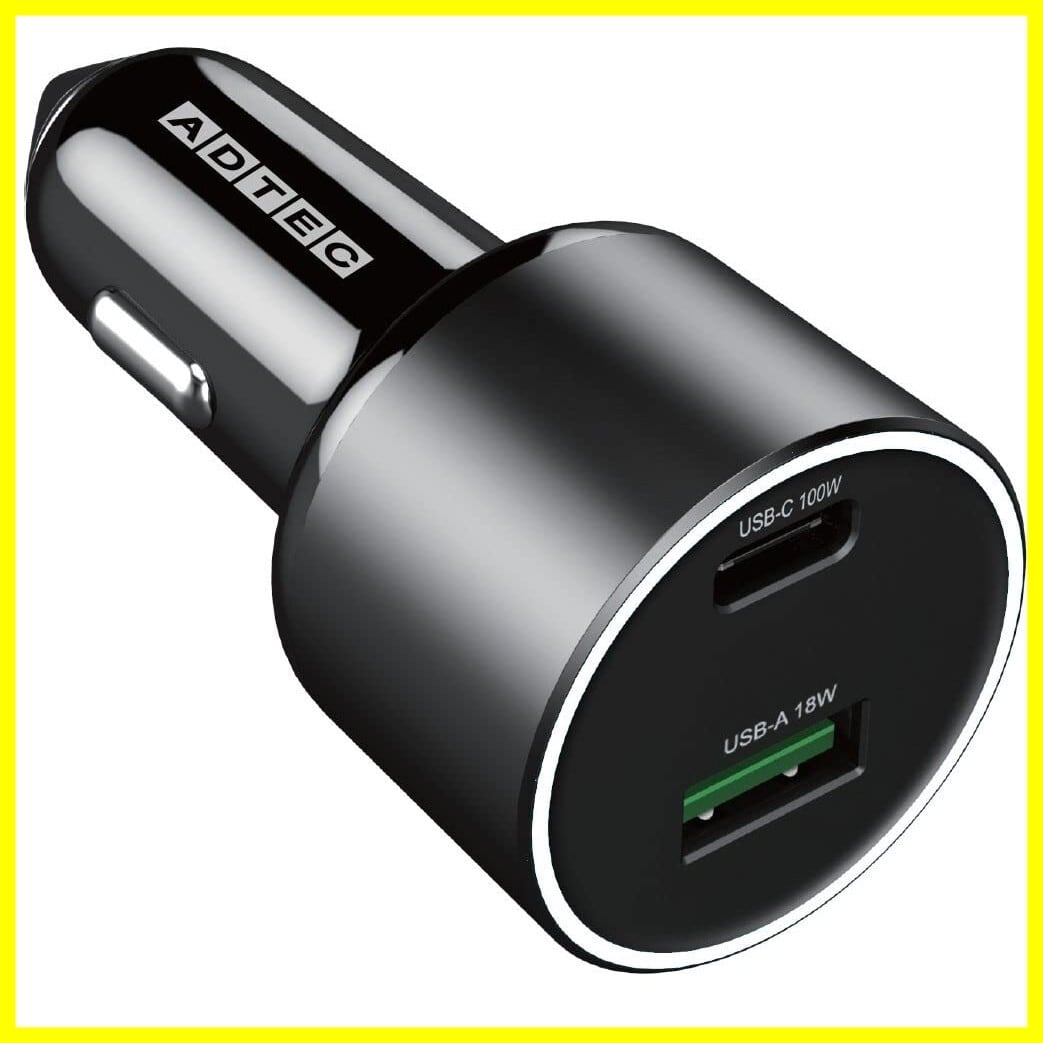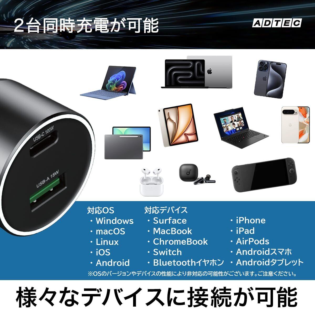 アドテック シガーソケット 車載PD充電器100W 2ポート 【USB-C+USB-A】カーチャージャー シガー PD QC iPhone 17 Air Pro Pixel10 Pro スマホ 対応 Switch パソコン PC ACアダプタ ACPD-V100AC