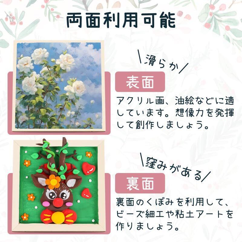 【両面利用可能】木製パネルの両面は素晴らしいペインティングボードとして使用でき、深面はDIYの粘土アートに使用できます。異なるニーズに合わせて個別にデザインや制作が可能であり、このキャンバスはさまざまな絵画の要求に応えることができます。