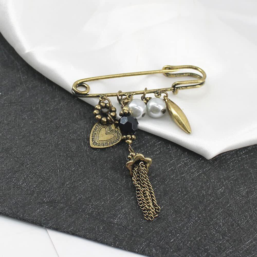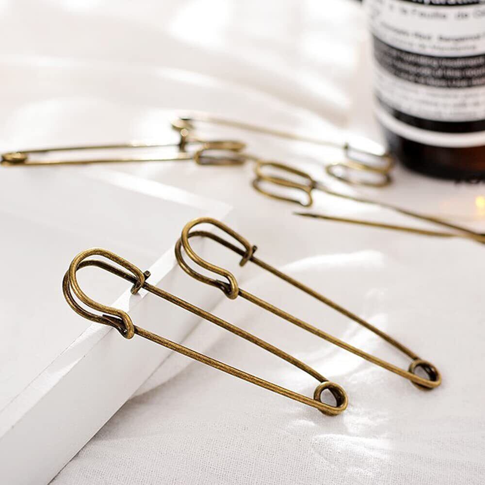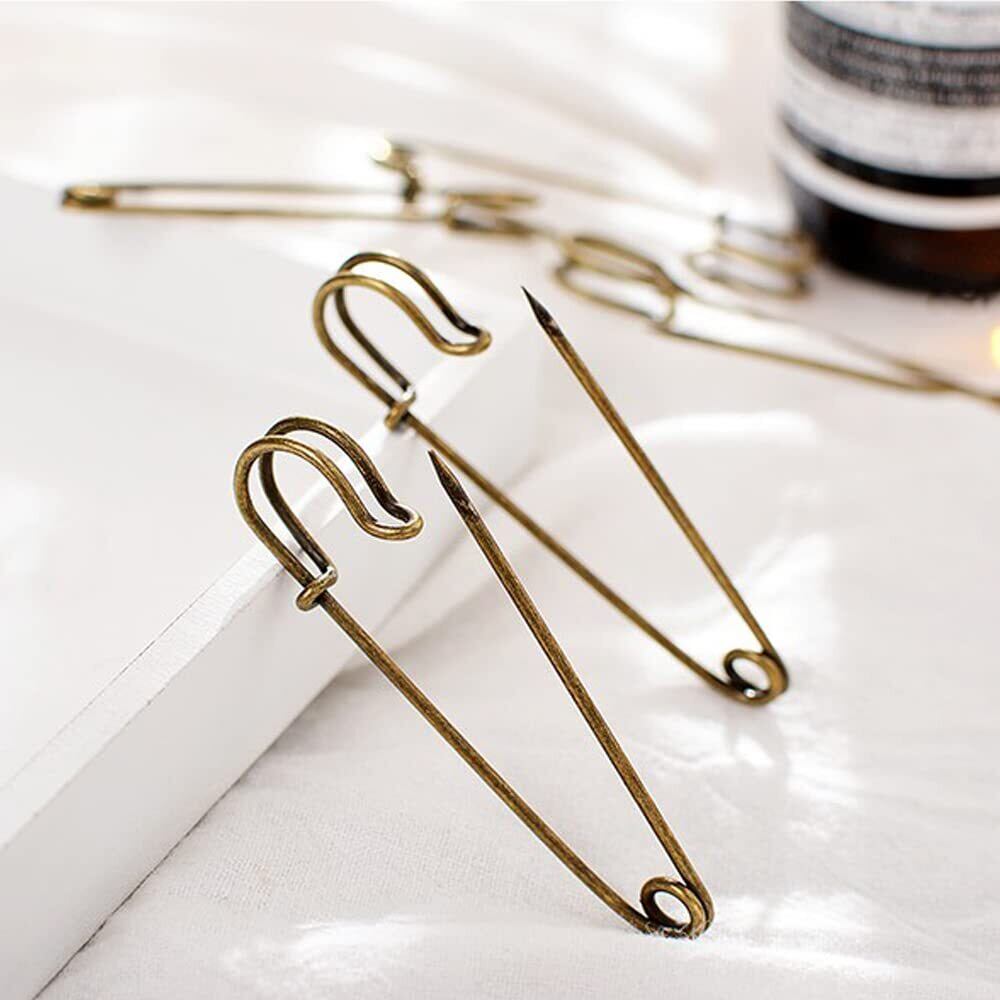 【おしゃれ】:今人気があるの特大安全ピン、おしゃれな古銅色やサイズは独特の雰囲気を作り出します。