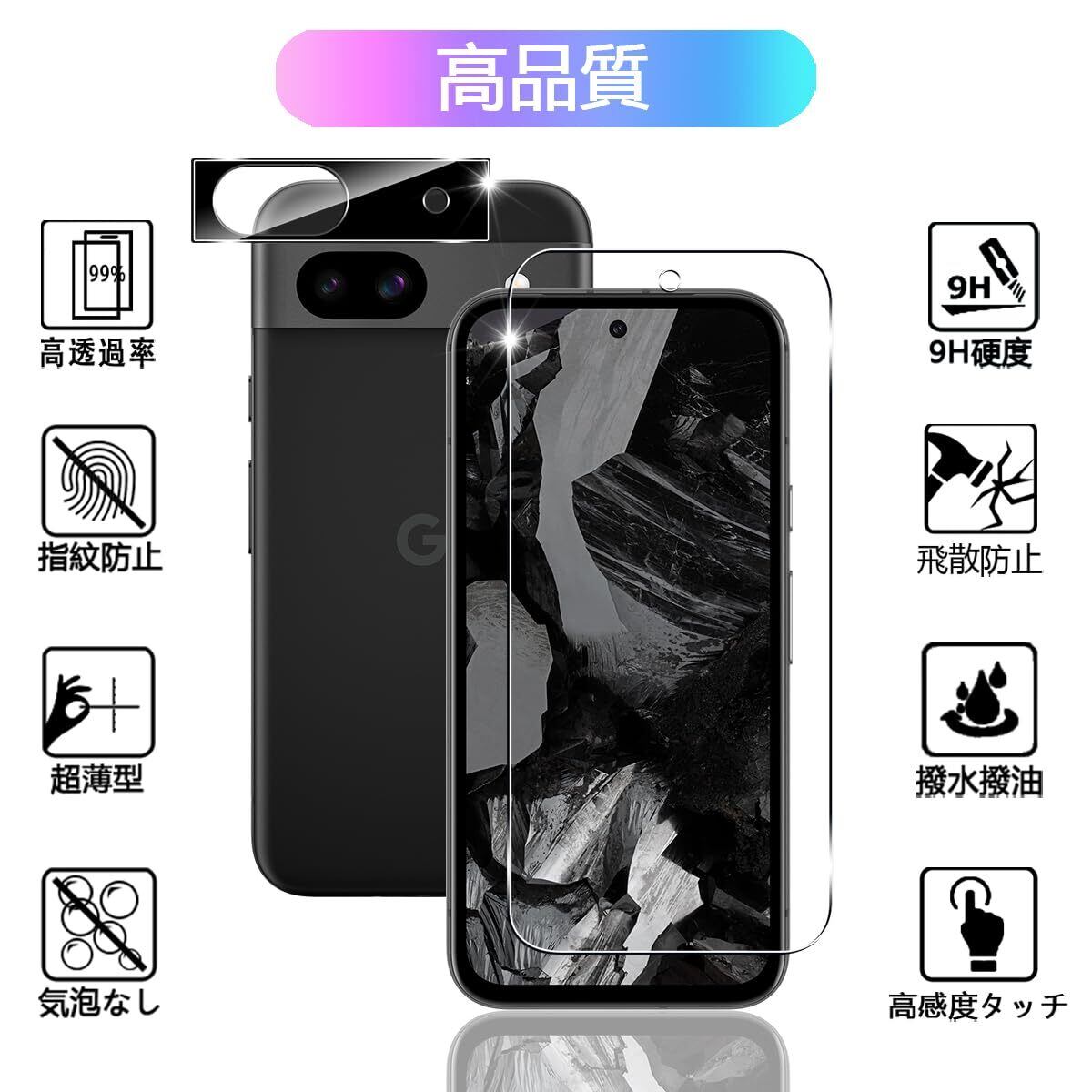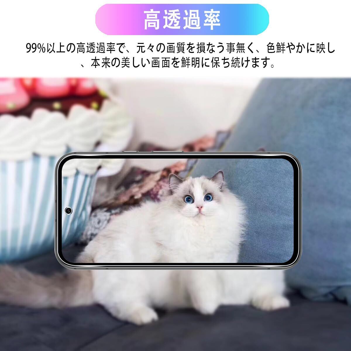【高透過率】 Pixel 8a 対応 ガラスフィルム高透過率、元々の画質を損なう事無く、色鮮やかに映し、本来の美しい画面を鮮明に保ち続けます。