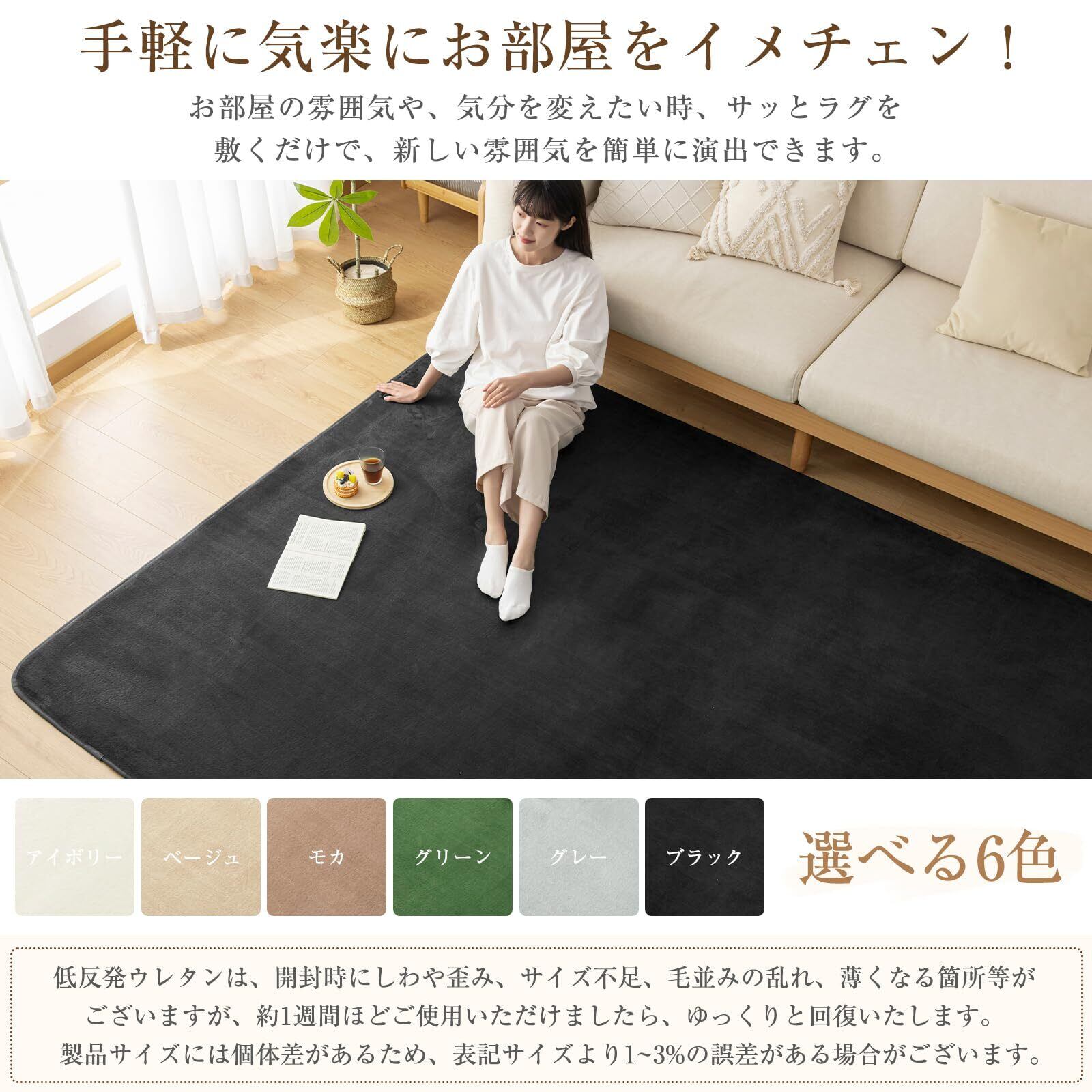 Softime カーペット ラグ 低反発 ラグマット 厚手 15mm 絨毯 防音 200×250cm 約3畳 滑り止め付 防ダニ 抗菌 防臭 地毯 オールシーズン快適 床暖房 ホットカーペット対応 じゅうたん リビングマット 無地・ブラック