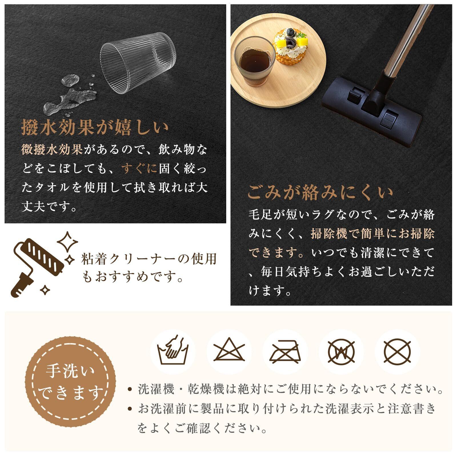【滑り止め・抗菌防臭】ラグの裏面には複数の滑り止めドットを施し、床にしっかりフィット。優れた滑りにくさでズレを防止します。 さらに、お子様やペットがいるご家庭でも安心してお使いいただけるよう、抗菌加工を施しています。細菌の繁殖を抑えて嫌なニオイを防ぐ効果があり、さらに長期間その効果が持続します。