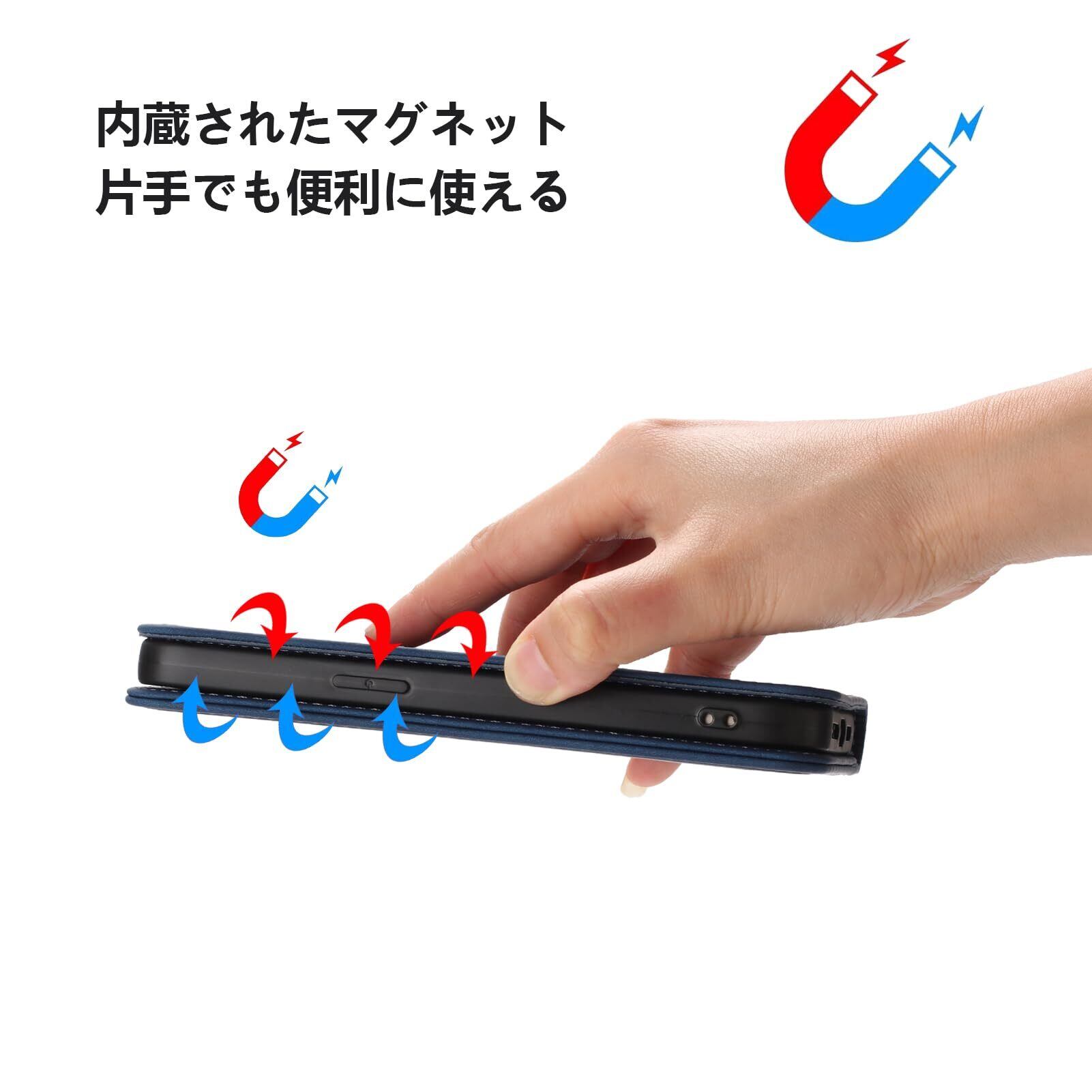 【マグネット内蔵 全面保護】マグネット内蔵の手帳型式で、カバーを閉める時、片手で簡易に開閉することはできます。外側は高品質のPU製で、落下時の衝撃を効果的に吸収してスマホへの直接的な外力を防げるようになっています。内側は柔軟性あるTPUケースで、二重の保護として機能します。破損することはありません、衝撃から本体を各方向で360°保護します。