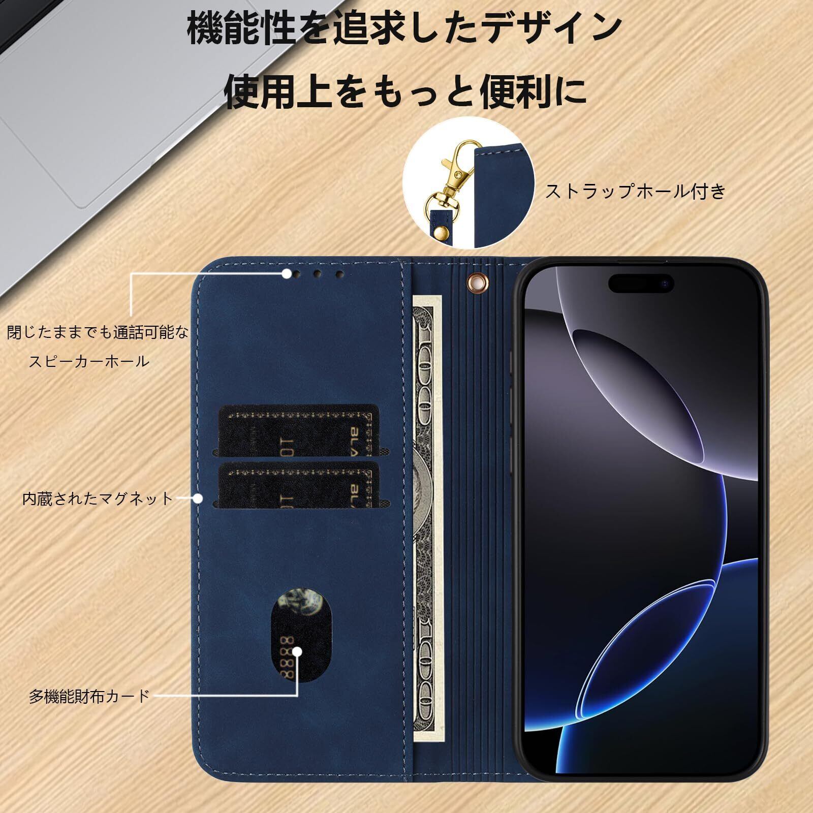 iPhone 15 ケース 手帳型 iPhone15 カバー アイフォン スマホカバー あいふぉん 手帳型 ストラップ付き 肌触り良いレザー スマホケース マグネット内蔵 全面保護 耐衝撃 耐摩擦 スタンド機能 カードケース 財布型 カード入れ ブルー